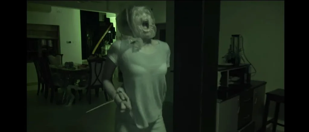 Swapna’s psychiatrist informs her that she’s experiencing something called ‘anniversary reaction’. We later learn that she’s a rape victim and that horrid incident has caused her to be fearful of the world, understandably so. Another layer of intrigue is added. The climactic thrilling sequence where she tries to overcome the masked serial killer doubles as a fight to reclaim her individuality. It’s not just an uphill fight against a “bad guy” but a laboured battle against (cruel) MEN. The killer(s) identity remain anonymous. It doesn’t matter who they are. They represent misogyny and perhaps a patriarchal system that needs to be broken and shattered.