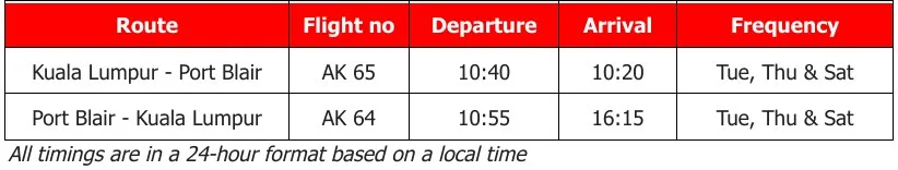 Flight Schedule between Kuala Lumpur (KUL) and Port Blair (IXZ):