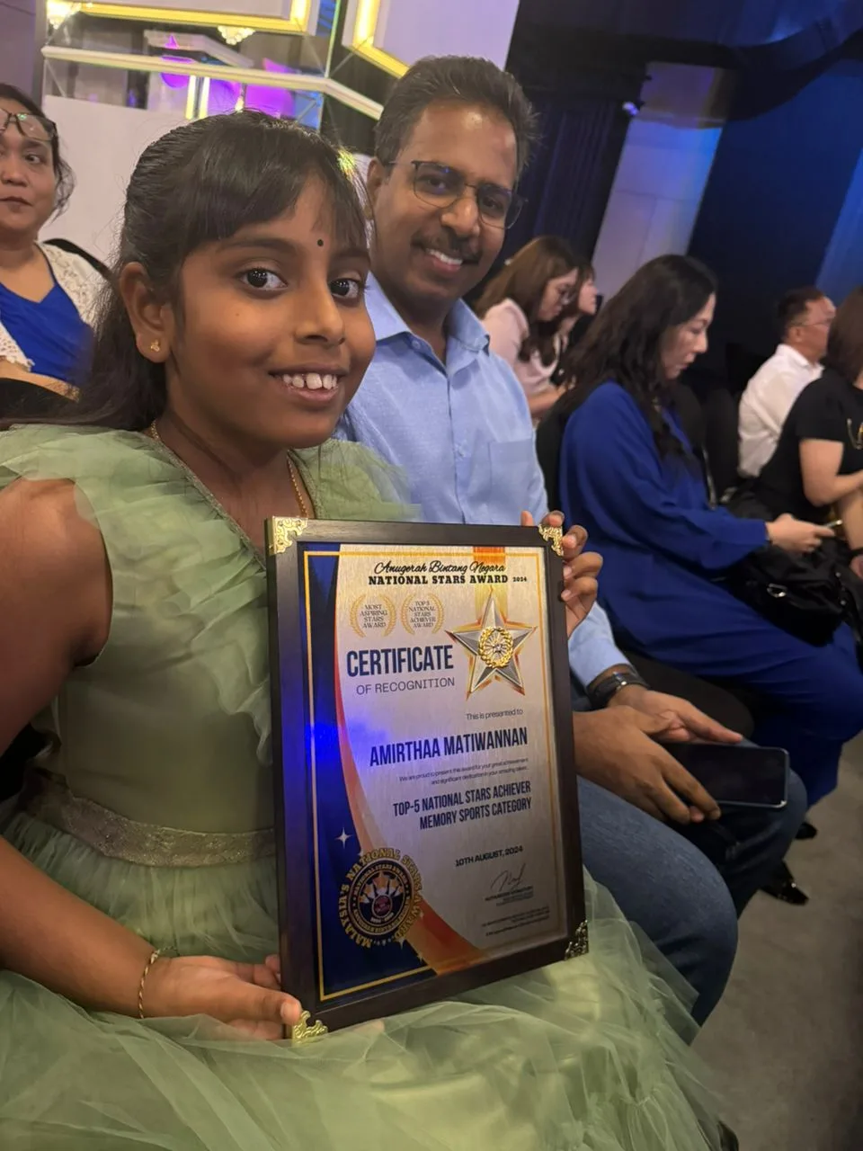 Amirthaa Matiwannan, a 9-year-old prodigy from Penang, recently received the prestigious National Star Award at the ‘Kids Got Talent Malaysia’ event for her outstanding abilities in memory sports. This award is just one of many accolades she has received for her exceptional talents.