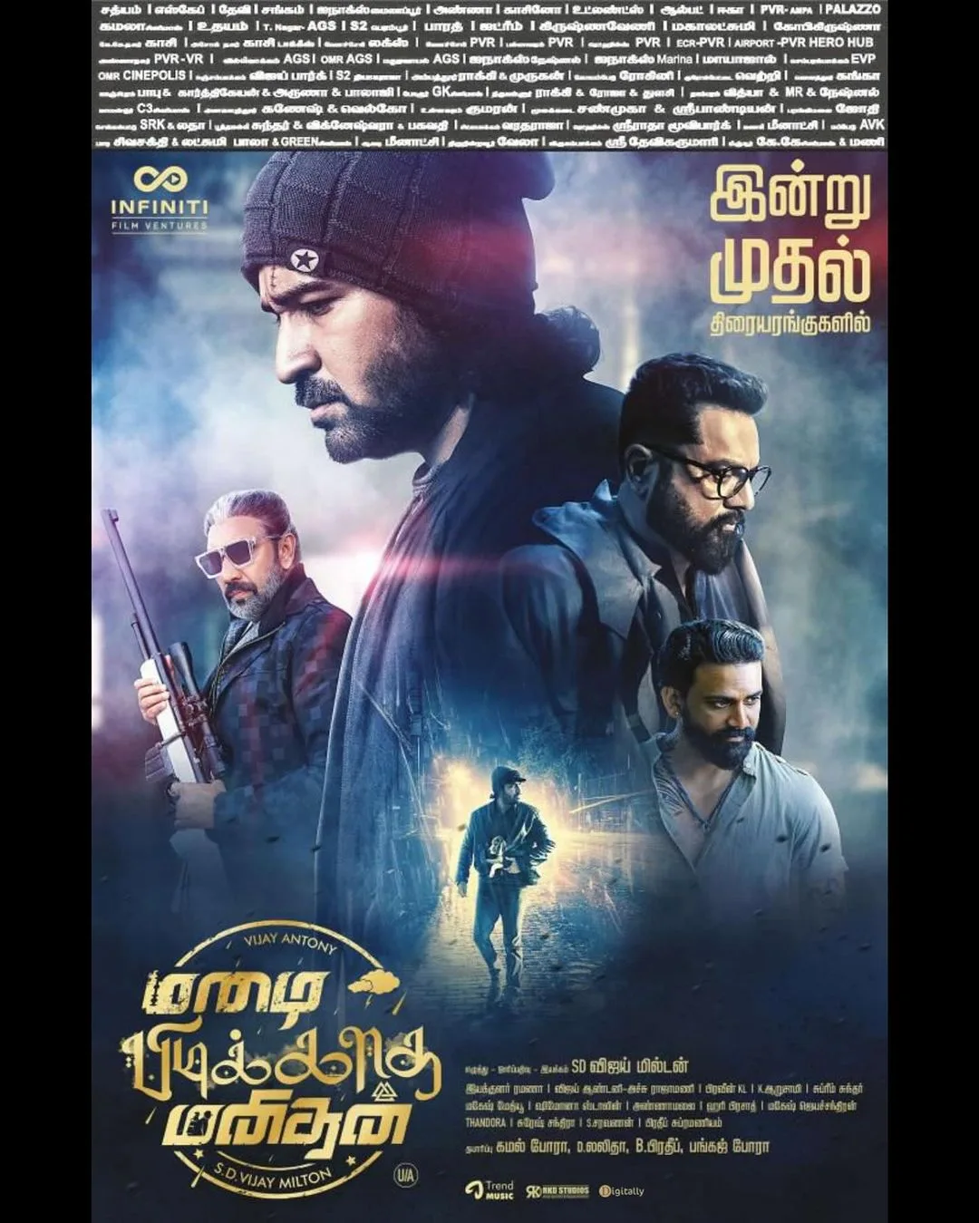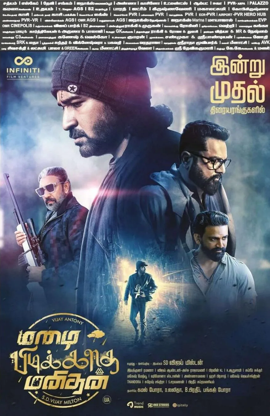 ‘Mazhai Pidikatha Manithan’ is a 2024 Indian Tamil-language action thriller, crafted by writer and director Vijay Milton. The film features Vijay Antony in the lead role, supported by Megha Akash, Pruthvi Ambaar, and Murali Sharma. The plot centers around a man presumed to be dead but who is actually in hiding. He is compelled to return to action to safeguard his family and the nation.