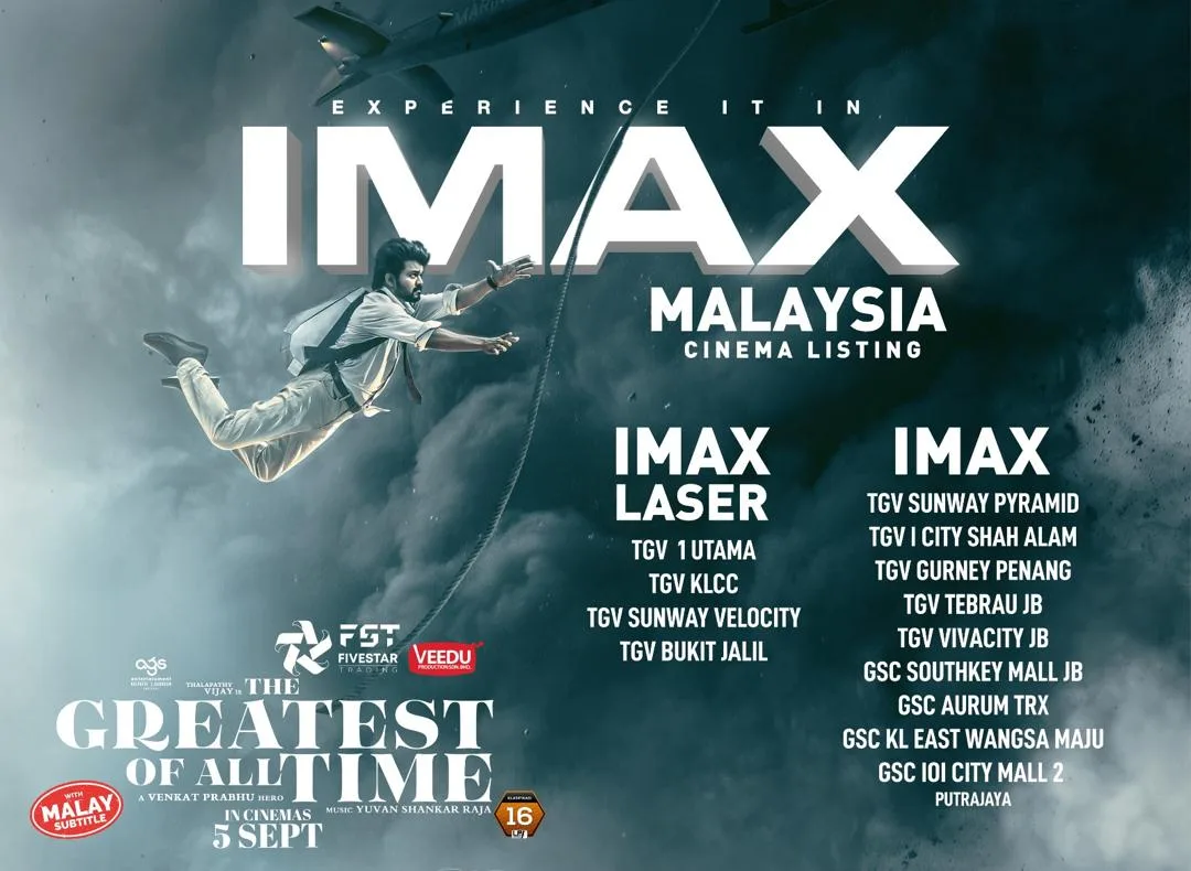 Guess what? You can also experience ‘The GOAT’ in Dolby Atmos and IMAX! Here’s a list of cinemas offering these state-of-the-art facilities. Catch Thalapathy Vijay in the ultimate cinematic experience: