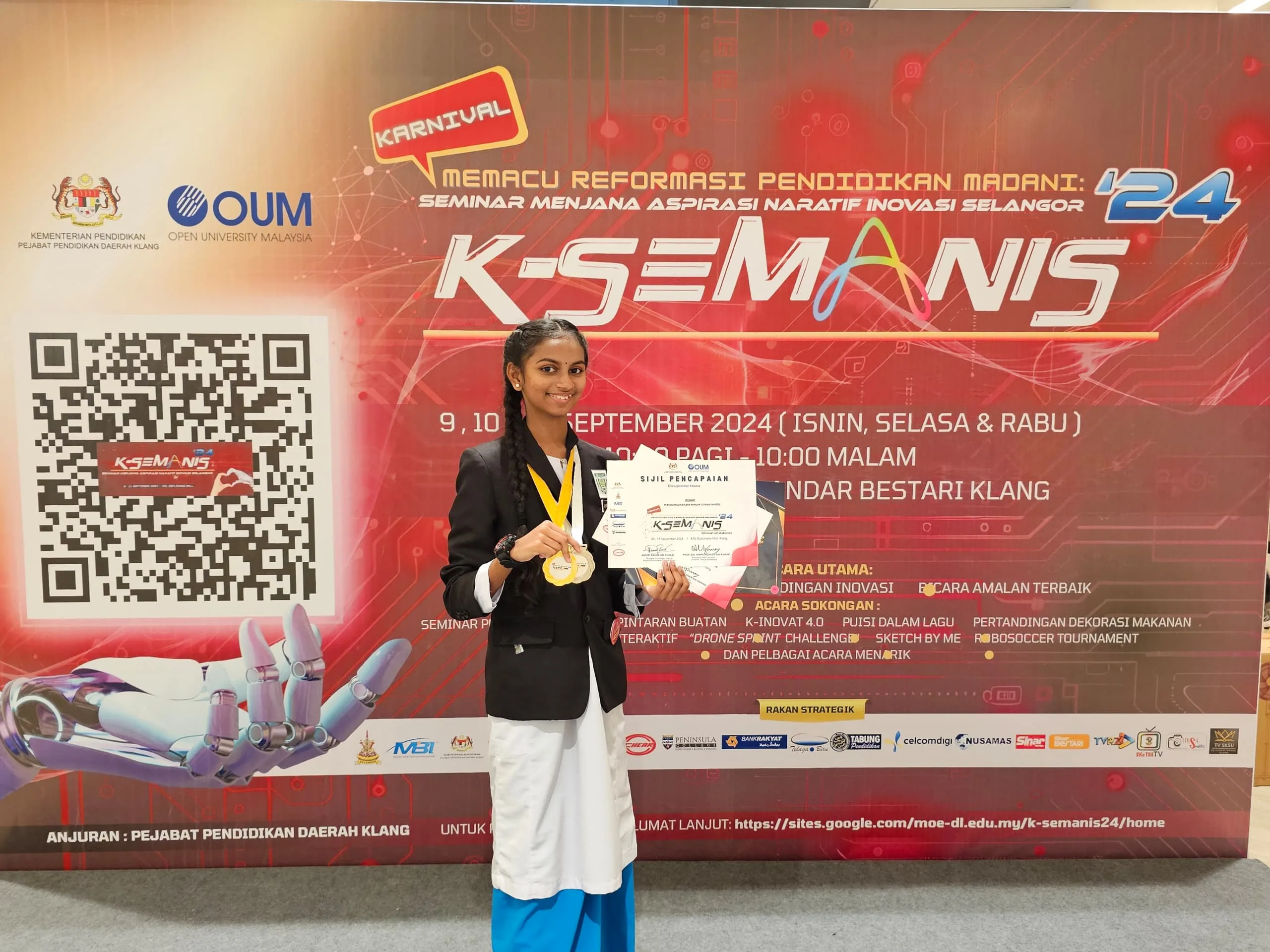 Harshavardini’s success at the K-Semanis 2024 International Innovation Competition, showcases her exceptional versatility and leadership. Supported by her dedicated teammates, mentors, and school teachers, her achievements reflect the outstanding talent and commitment to innovation and excellence at SMK Raja Mahadi. As Harshavardini continues to make her mark in various fields, her accomplishments serve as an inspiration to her peers and a source of pride for the entire community.