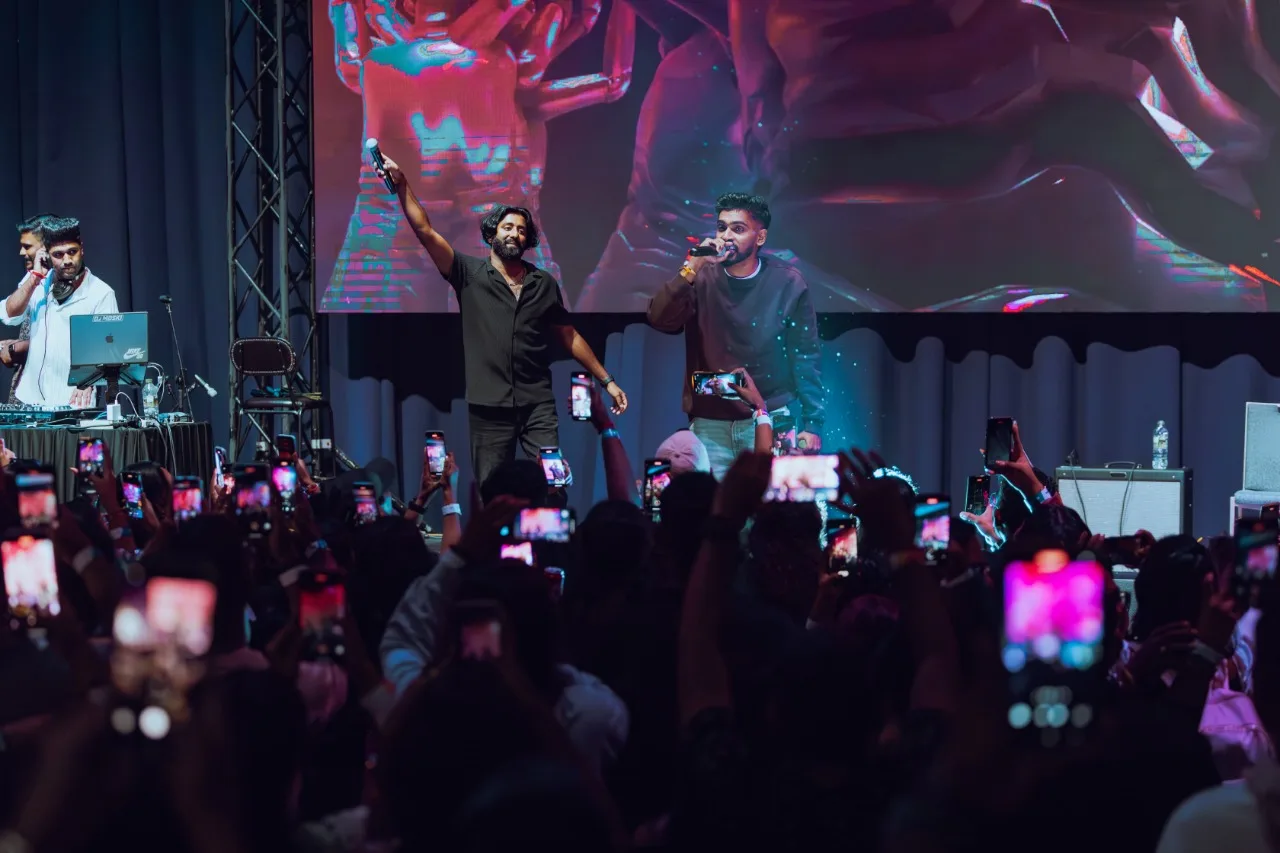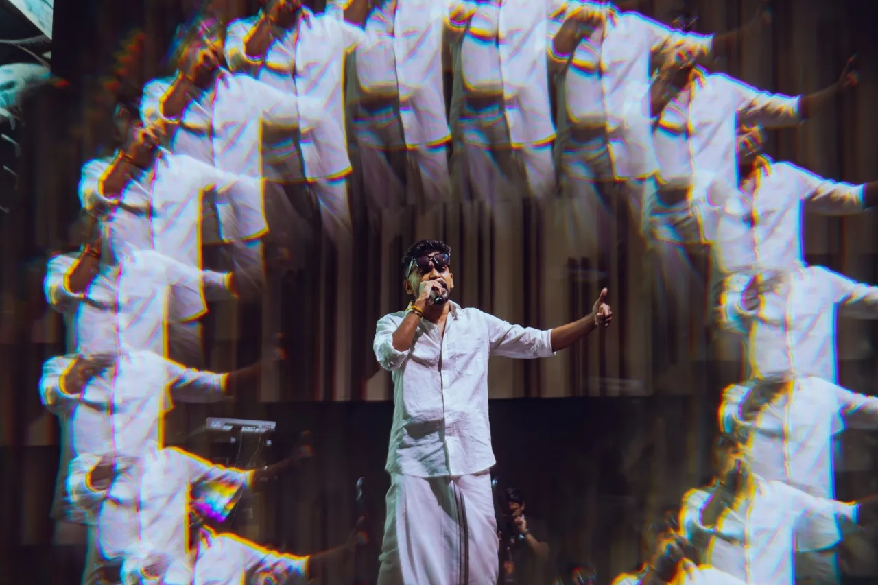 The viral hit “Naan Kudikke Poren,” which has dominated playlists, was performed by Sahi Siva and Ratty Adhiththan together. The duo also collaborated on the energetic track “What A Vadivu.” Ratty Adhiththan’s presence on stage created an electrifying atmosphere as he appeared in traditional attire, the veshti, showcasing his love for the Tamil language and culture through his music.