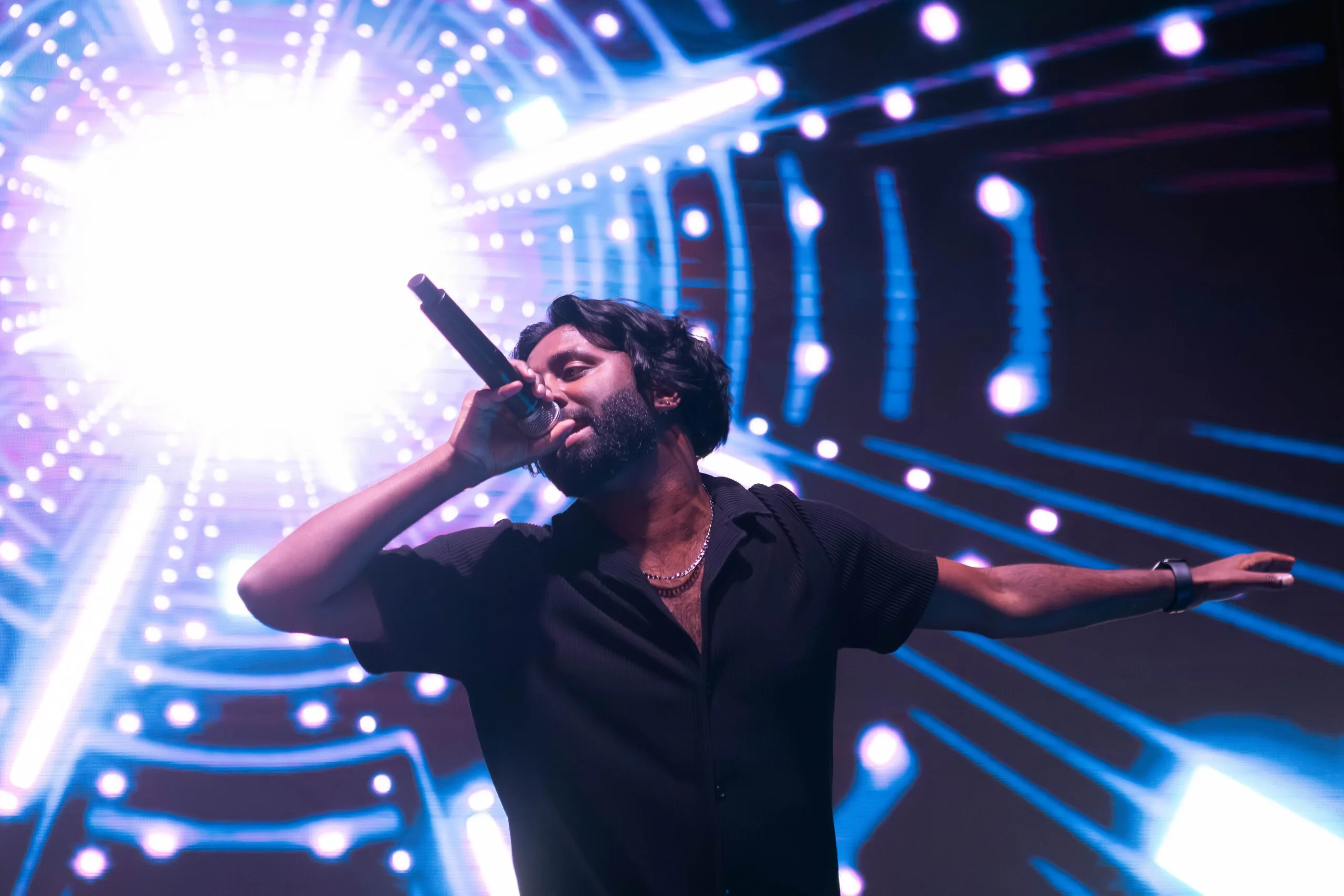 Sahi Siva taught them the signature hook step from his hit song ‘Ammama,’ and together they danced on stage, creating an electrifying atmosphere. The girls were overjoyed, clearly reveling in the moment. This interactive experience was a beautiful demonstration of how Sahi Siva engaged with his audience, making the concert feel even more special and personal.
