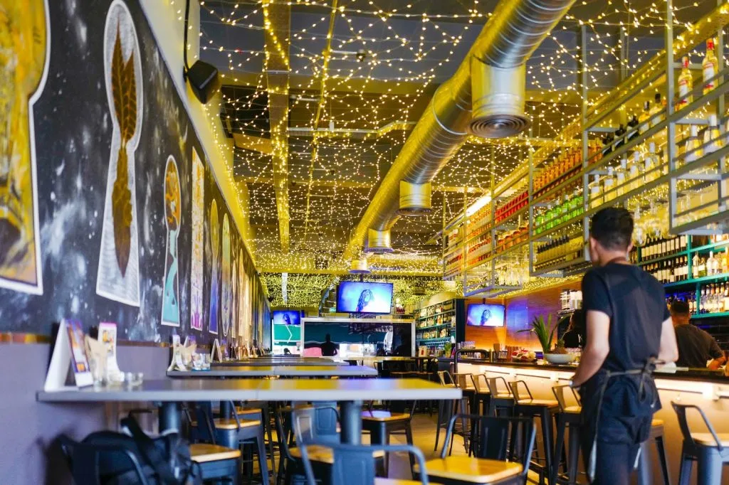 From the colourful mosaic tiles that adorn the five foot pathway, to the thousands of tiny lights that adorn the ceilings, if this eatery and bar is known for anything, it would be the attention to detail. The mythical vibe translates from the murals of large keyholes painted on the feature wall to the leather bound drink menu.