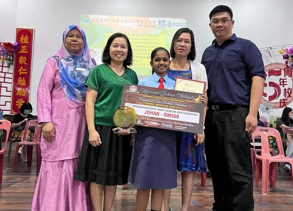 Twelve-year-old Vel Vizhly Nagamanni, a student from SJK (C) Peir Chih in Kelantan, has made a remarkable mark in the realm of storytelling by winning first prize in a national-level Malay language storytelling competition. This event was part of the National Level Carnival Bahasa Melayu, which took place over three days at Inti International University in Nilai, Negeri Sembilan.