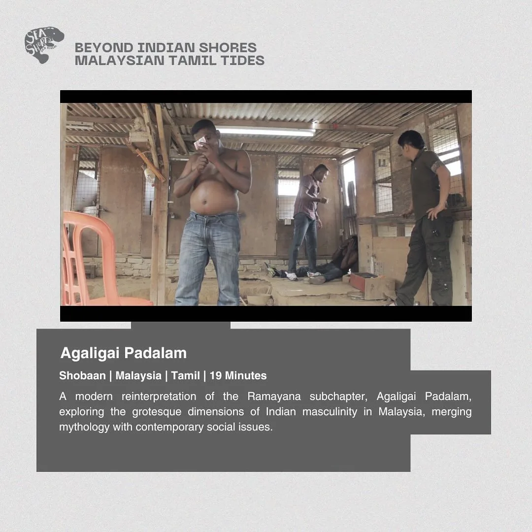 ‘Agaligai Padalam’, directed by Shobaan, is a 19-minute Tamil short film that offers a modern reinterpretation of the Ramayana subchapter, Agaligai Padam. Shobaan, who also co-directed the acclaimed film ‘Metro Maalai’, explores the grotesque dimensions of Indian masculinity in Malaysia by blending ancient mythology with contemporary social issues.