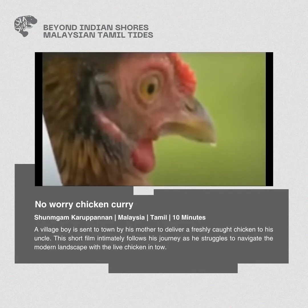 No Worry Chicken Curry, directed by Shunmgam Karuppannan, is a 10-minute Tamil short film that follows the journey of a village boy sent to town by his mother to deliver a freshly caught chicken to his uncle. What seems like a simple errand becomes an adventure as the boy struggles to navigate the complexities of the modern urban landscape, all while keeping hold of the live chicken. The film masterfully captures the contrast between rural and city life.