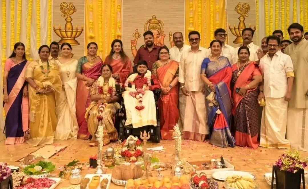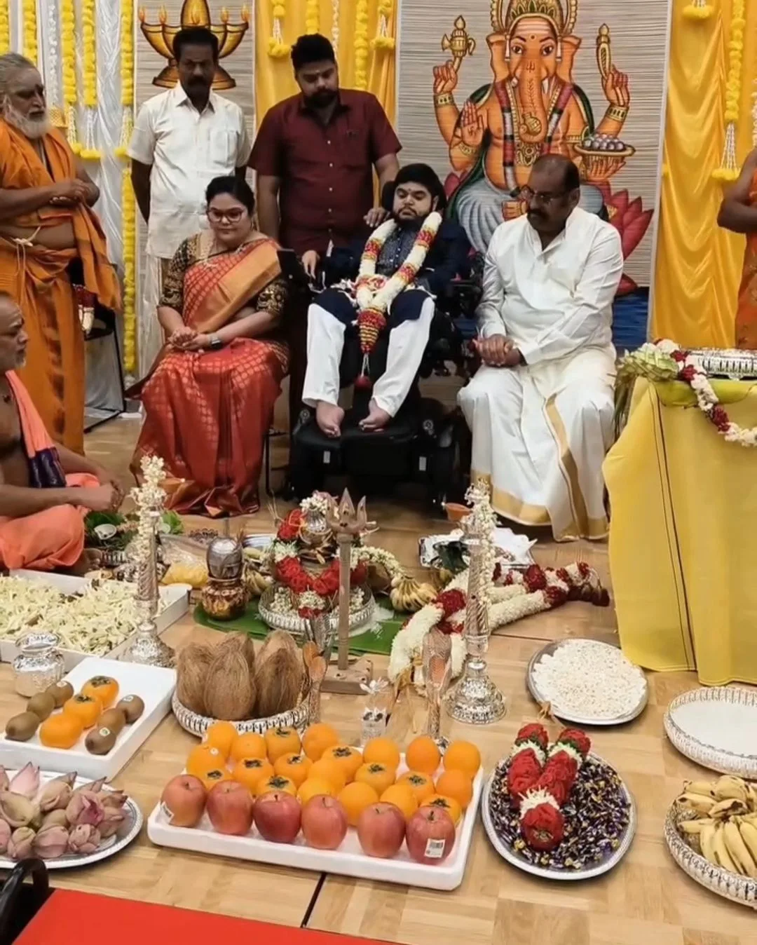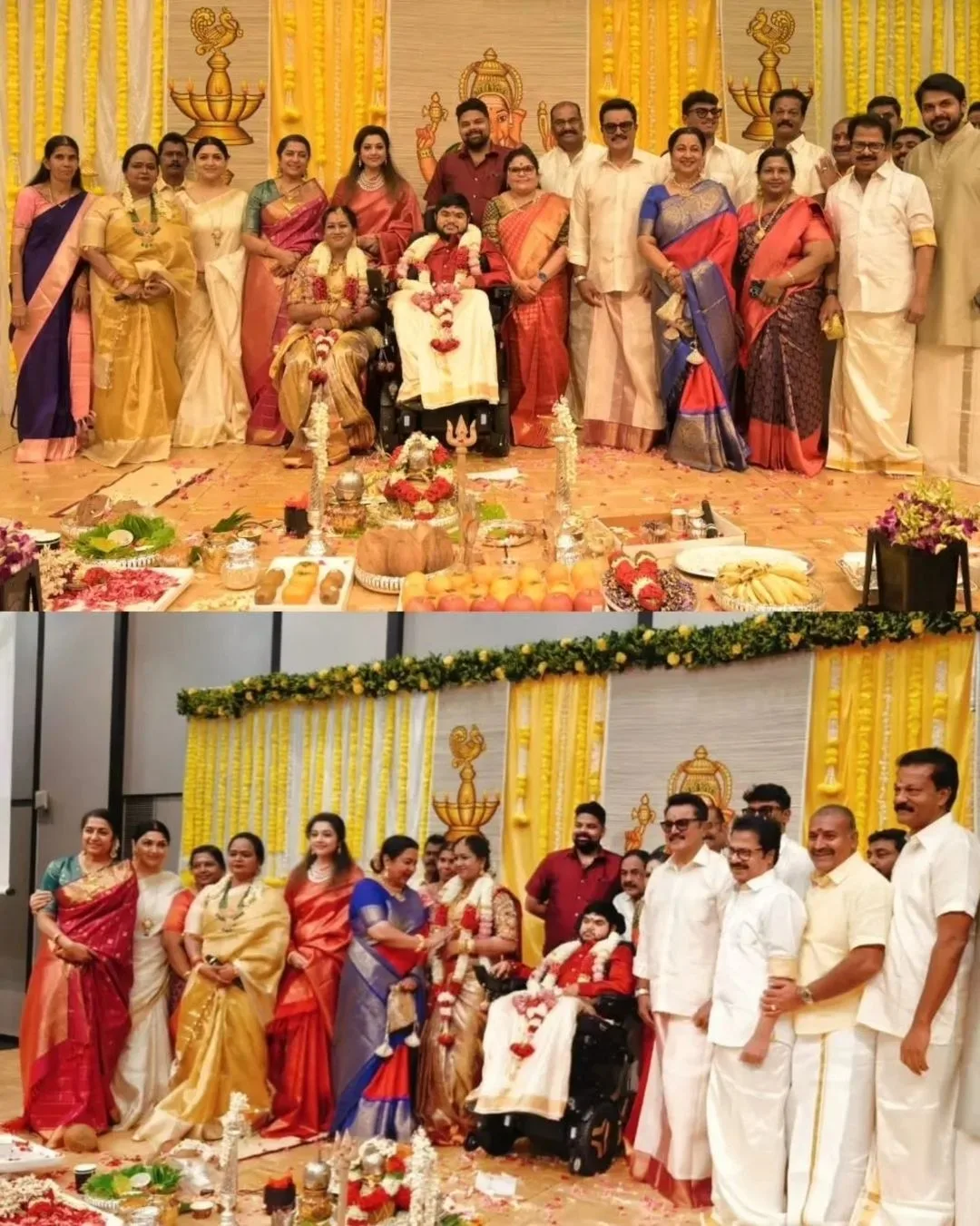 Dhanoosh, the elder son of actor Nepoleon, who has been living with muscular dystrophy, tied the knot yesterday in an extravagant Hindu ceremony held in Japan. Although Dhanoosh was unable to personally place the traditional wedding chain (thaali) around his bride Aakshaya’s neck, his mother stepped in to assist him. Napoleon and his family expressed immense joy and pride as they celebrated this significant moment in Dhanoosh’s life.