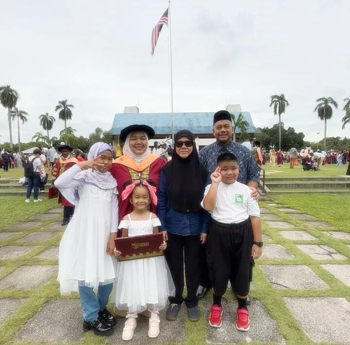 Dr. Nur Maisarah Roslan shared, “Growing up with a single mother, the hardest-working person I know, taught me invaluable lessons about life and achievement. My mother, Professor Dr. Normaliza Abd. Rahim, is an extraordinary role model who balanced her career as a lecturer—juggling endless publications and conferences—with the demanding role of raising six children on her own. Despite her challenges, she never compromised her duties as a mother and ensured all of us received quality education, leading us to pursue tertiary education at universities. I am incredibly proud to share that all three of her daughters, including myself, now hold PhD degrees. Her unwavering determination and relentless drive to push herself forward have inspired me throughout my life. Thank you, Mama—you are my greatest inspiration.