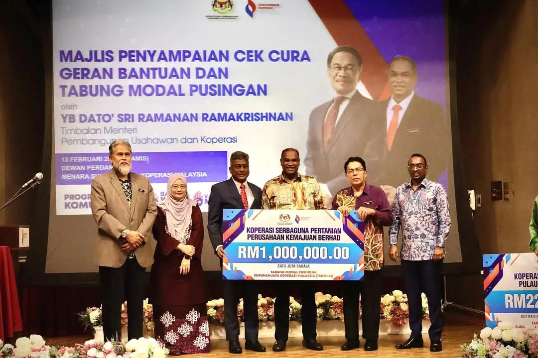 Deputy Entrepreneur and Cooperatives Development Minister Datuk Seri R. Ramanan distributed RM1.4 million in financial assistance yesterday to support eight Indian community cooperatives, aiming to strengthen the cooperative sector within the community.