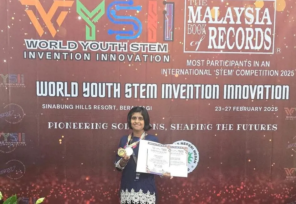 Yaazhiniy Pugazhenthi, a student from SJKT Tan Sri Dato’ Manickavasagam in Tanjong Malim, made the nation proud by winning both the Gold Award and the Best Sustainability Award at the World Youth STEM Invention Innovation 2025 (WYSII 2025). The prestigious international science innovation competition was held in Medan, Indonesia, from February 23 to 27.