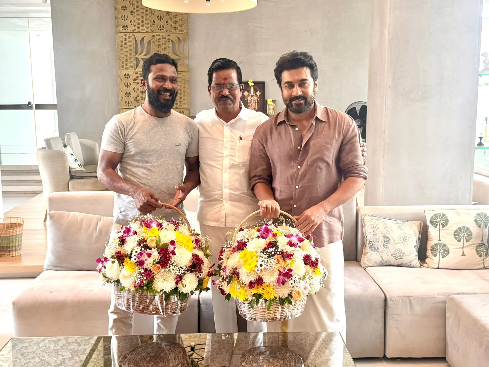 Kalaipuli S. Thanu shared a picture of himself with director Vetrimaaran and Suriya, captioning it in Tamil, “Agilam Aarathika Vaadi Vaasal Thirakirathu” (With the world cheering, the Vaadi Vaasal opens). Vaadivaasal refers to the narrow gateway through which bulls enter the arena in the traditional sport of Jallikattu. Interestingly, Jallikattu is held on Maatu Pongal as part of the Pongal festival celebrations.
