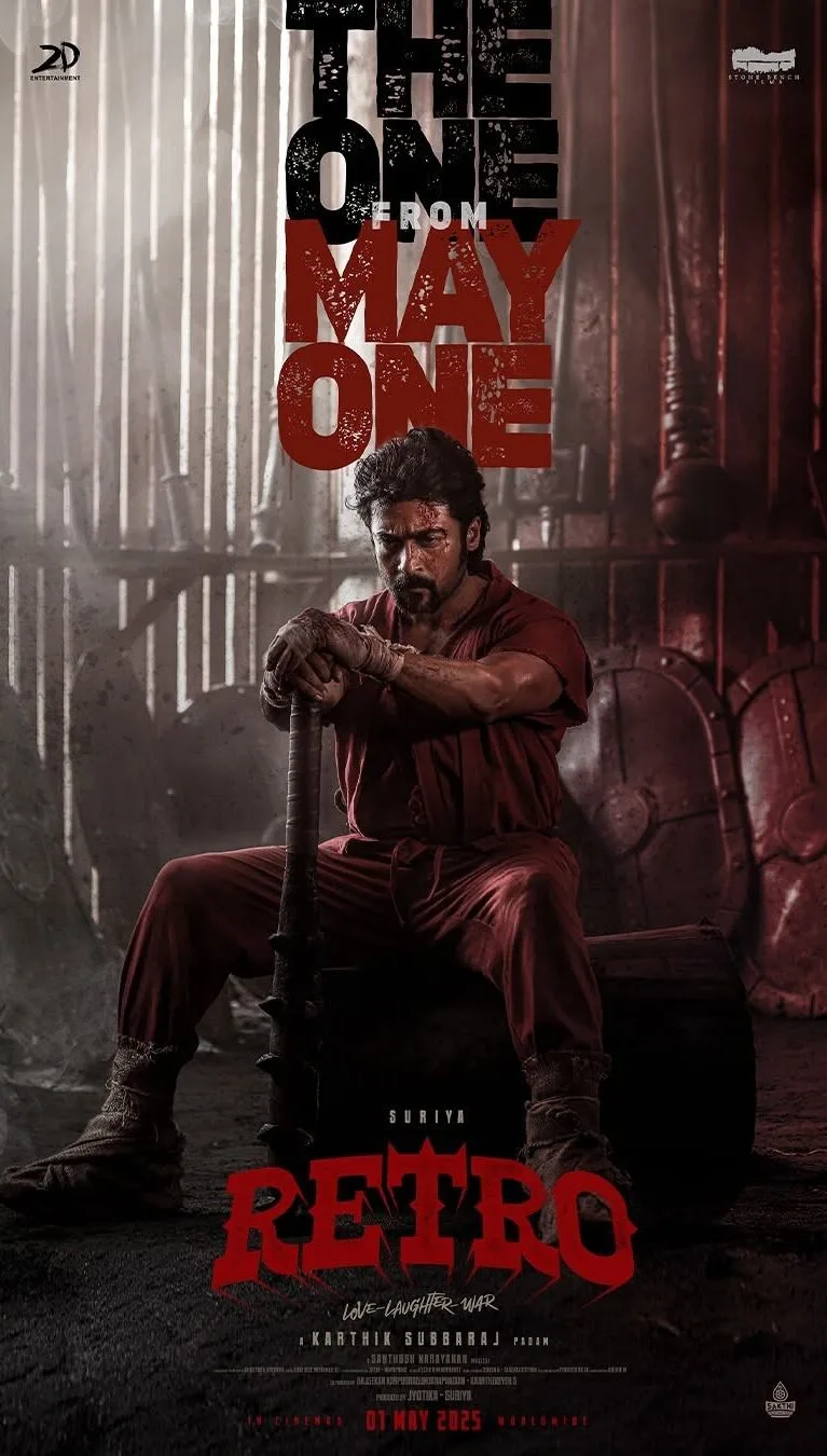 Retro is produced by Suriya and Jyotika’s 2D Entertainment in collaboration with Karthik Subbaraj’s Stone Bench Films. The film features an ensemble cast, including Jayaram, Nasser, Prakash Raj, Sujith Shankar, Karunakaran, Tamizh, Prem Kumar, Ramachandran Durairaj, Sandeep Raj, Murugavel, and Remya Suresh, among others.
