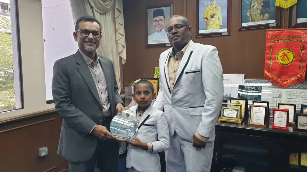 Vasanth Abhinandan, a Year 2 student at SJKT Bandar Seri Sendayan, has brought pride to his parents and school by achieving a remarkable milestone. He was recently honored with the Best Sports Achievement Award at the Negeri Sembilan Youth and Sports EXCO office, recognizing his outstanding accomplishments in sports.