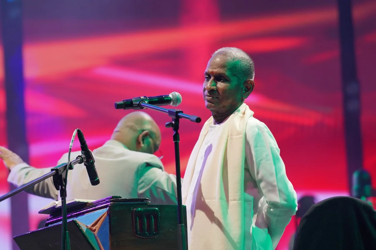 Adding to the magic of the night, Ilaiyaraaja himself took to the stage to sing a few of his most beloved songs. His rendition of Janani Janani was nothing short of breathtaking, instantly melting the hearts of the audience. He also performed other songs like Oru Jeevan, Ithayam Oru Koyil and Kaattumalli, with his powerful rendition of Ithayam Oru Koyil leaving the crowd mesmerized, echoing the sheer brilliance and emotion of his music.