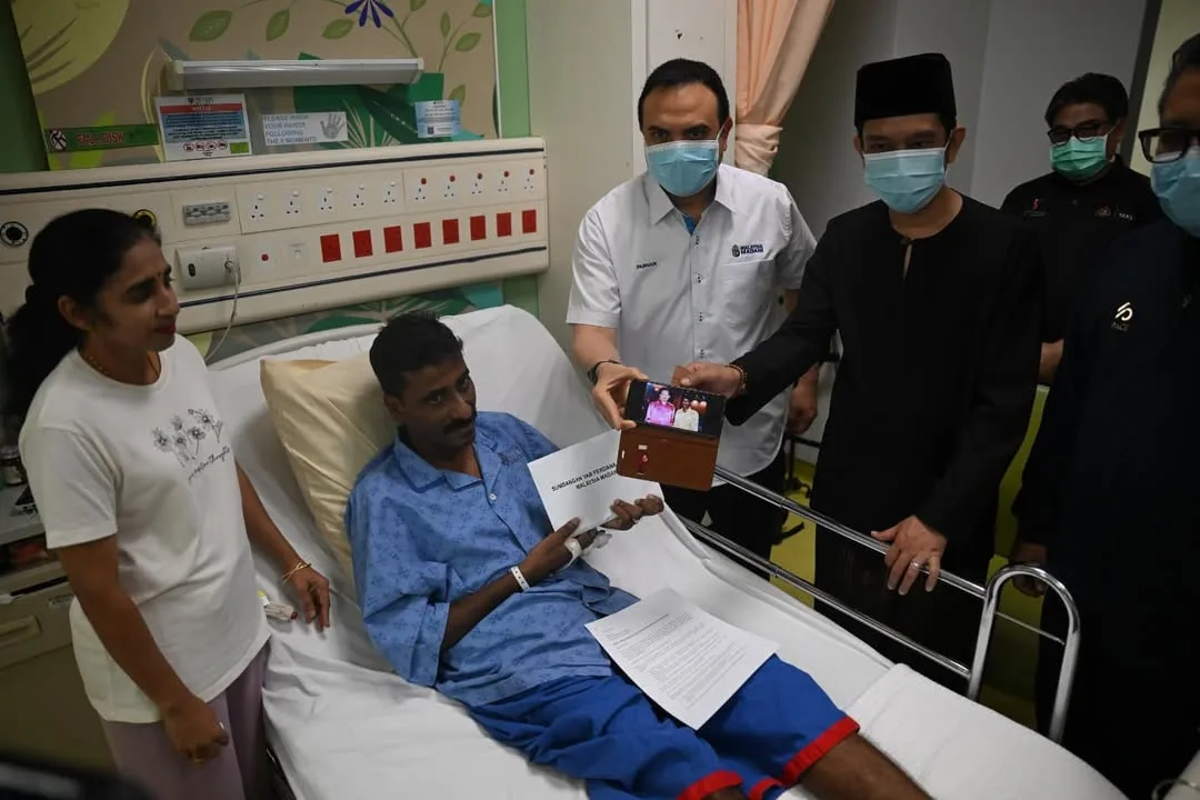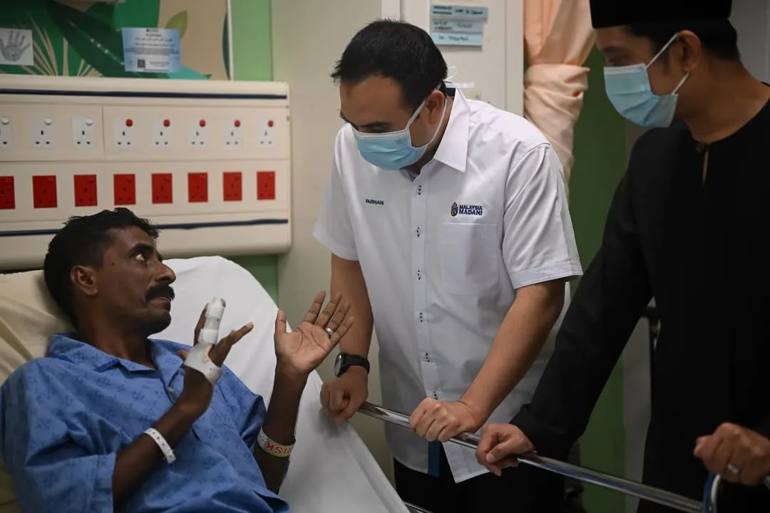 On behalf of Dato Seri Anwar Ibrahim and his wife, Dato Seri Dr Wan Azizah, the Prime Minister’s Political Secretary Datuk Ahmad Farhan Fauzi visited Saravanan at a hospital near Petaling Jaya to pass the aid personally and convey their gratitude and support.
