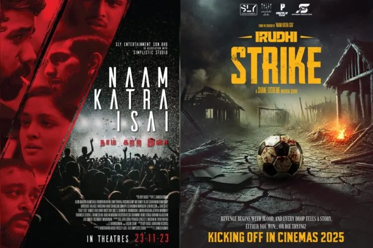 The filming of the prequel to Naam Katra Isai has officially been completed, and the makers have unveiled both the title and the first look poster of the film today. Titled Irudhi Strike, the film’s first look has already captured attention with its striking visuals. The poster features a football set against a backdrop of chaos, hinting that the story will center around the world of football, likely blending sports with intense drama. Music for Irudhi Strike is composed by Shane Extreme, adding to the excitement surrounding this much-anticipated prequel. The film is produced by Simplistic Studio in collaboration with SLY Entertainment and Shahana Production.