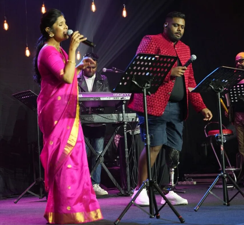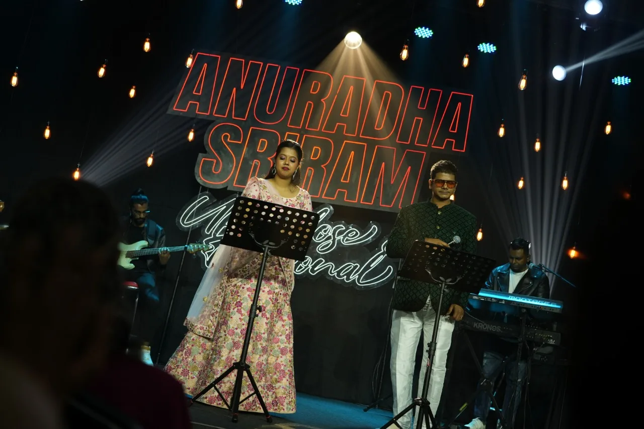 The musical evening began with an energetic opening performance by Anuradha Sriram herself, featuring her hit song Malarodu Malaringu from the film Bombay. The night continued to captivate the audience as she delivered powerful renditions of some of her most beloved tracks, including Karu Karu Karupayi (Eazhaiyin Sirippil), O Podu (Gemini), Oru Naal Oru Kanavu (Kannukkul Nilavu), Karupputhan Enakku Pidicha Colouru (Vetri Kodi Kattu), Lesa Lesa (Lesa Lesa), and Anbendra Mazhaiyilae (Minsara Kanavu), among others. Adding to the night’s enchantment, celebrated local talents Michael Rao, Thivya Chandran, and Murty also took to the stage, impressing the crowd with soulful performances of 2000s classics like Roja Poonthotam (Kannukkul Nilavu), Kaattu Sirukki (Raavanan), and Uyire En Uyire (Thotti Jaya).