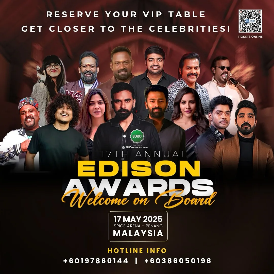 Get ready for a glamorous night celebration South Indian cinema as the 17th Annual Edison Awards rolls into Spice Arena Penang. Known for honouring Tamil films, the award will bring together a lineup of actors, musicians, directors and creators under one roof.