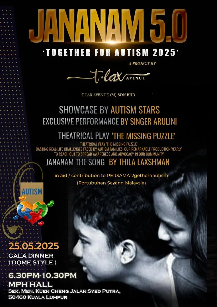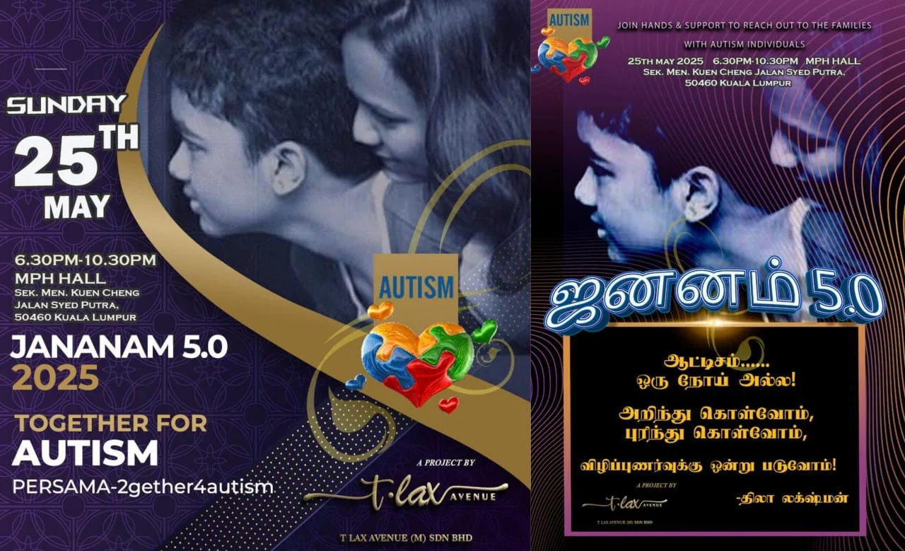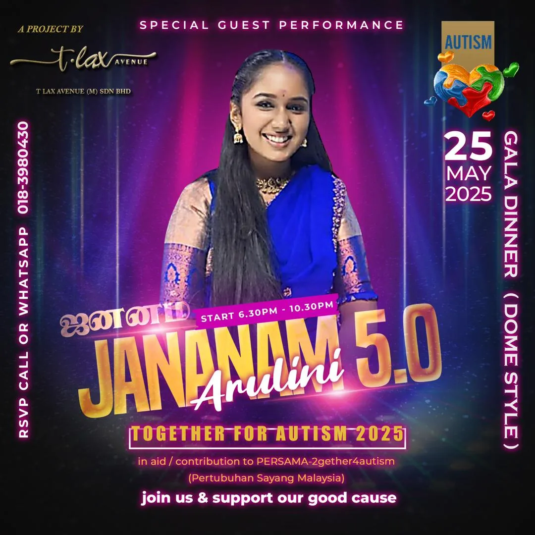 The much-anticipated Jananam returns with its fifth edition — Jananam 5.0: Together for Autism 2025 — set to take place on 25 May 2025 at the Multipurpose Hall, SMK Kuen Cheng, Kuala Lumpur. Leading this meaningful initiative is well-known singer and community activist Thila Laxshman, whose personal journey continues to touch and inspire many.