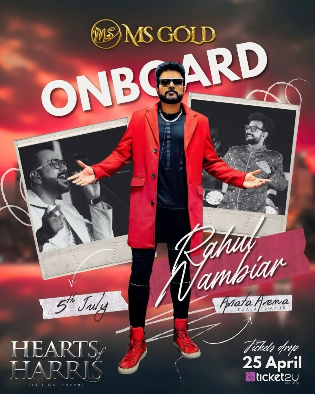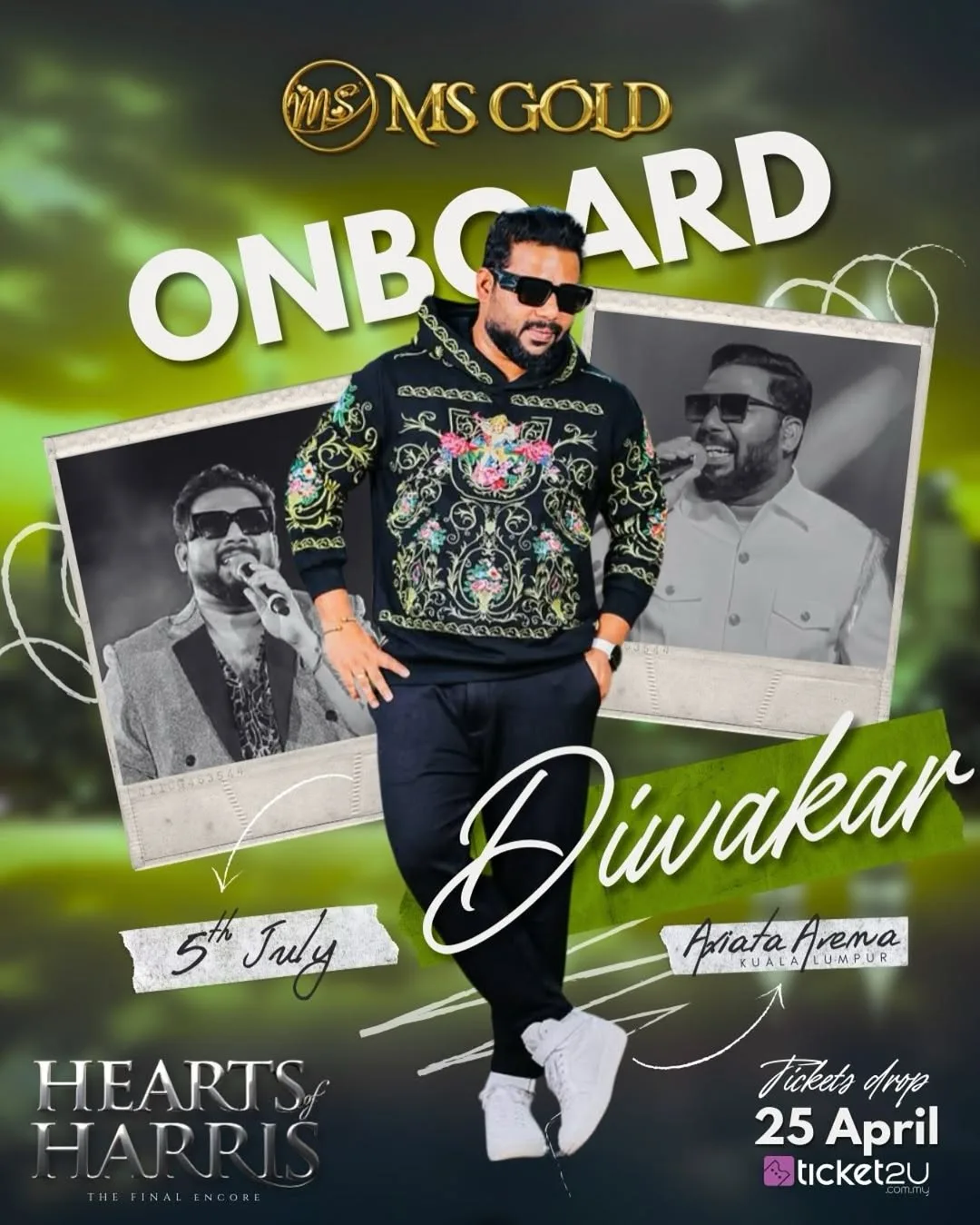 With an extraordinary lineup of international stars, celebrated local talents, and a vibrant atmosphere curated by the charismatic host Kogu, Hearts of Harris – The Final Encore promises to be a landmark event in Malaysia’s live music scene. Whether you’re a longtime fan of Harris Jayaraj’s timeless melodies or new to his music, this is your chance to be part of a truly special celebration. Don’t miss out on an unforgettable night of music, passion, and nostalgia — secure your tickets now and get ready for a musical journey like no other!