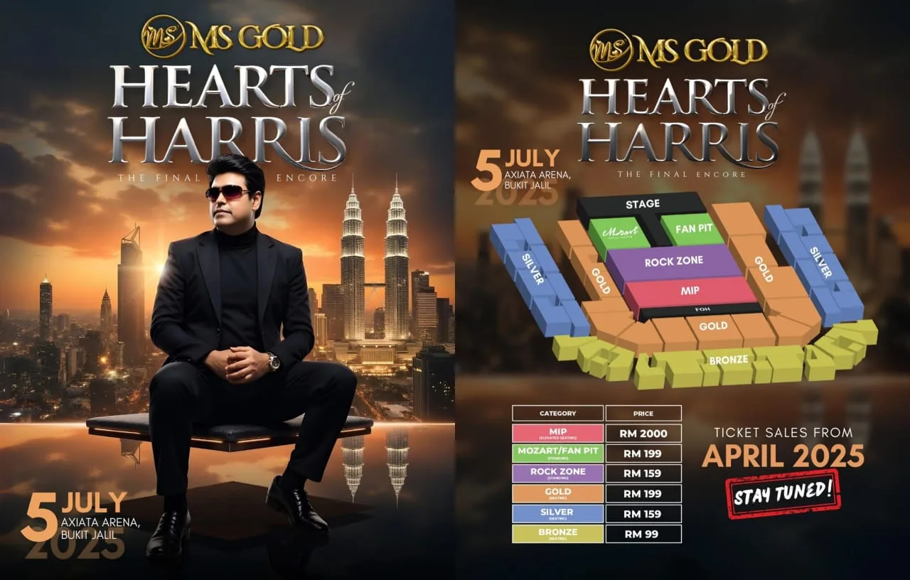 Malik Streams Corporation and MS Gold are once again bringing electrifying musical experiences to Malaysian audiences with two spectacular concerts set to take place this year. Fans can look forward to “Hearts of Harris – The Final Encore” and “Vijay Antony Live in Concert 2.0”, both promising unforgettable nights of music, energy, and star power. Kicking off the excitement is Hearts of Harris – The Final Encore, happening on Saturday, 5th July 2025, at Axiata Arena in Bukit Jalil.