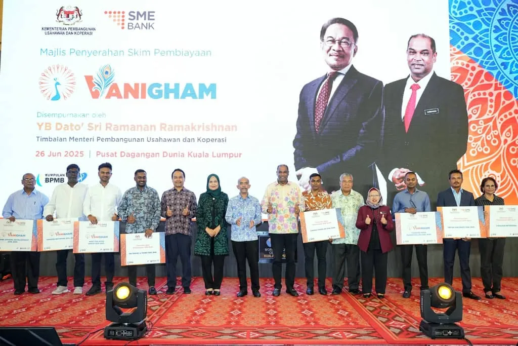 KUSKOP Deputy Minister YB Dato’ Sri Ramanan Ramakrishnan reaffirmed the government’s commitment to empowering the Indian community through entrepreneurship. “This clearly reflects the vital role Indian entrepreneurs play in driving Malaysia’s economic growth,” he stated during a press conference held in conjunction with the launch of the Vanigham Financing Scheme by SME Bank.