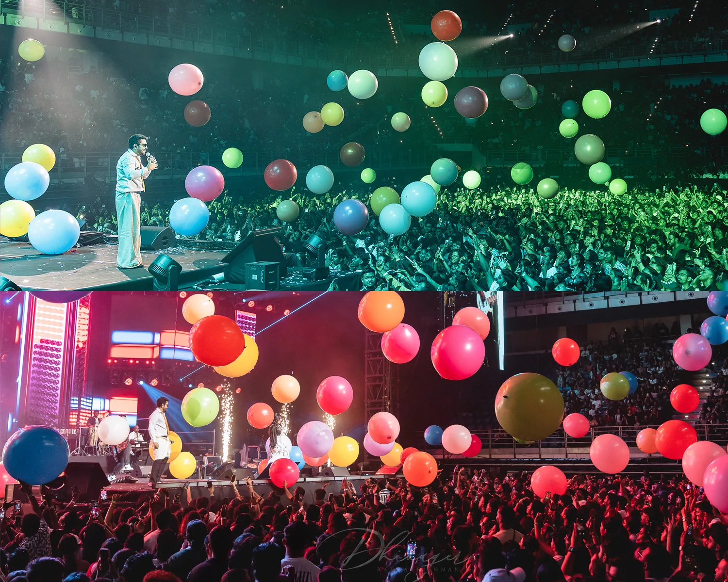 To elevate the atmosphere even further, the organizers added an unexpected and delightful surprise—balloons and bubbles filled the air around the audience, creating a whimsical, joyous vibe rarely seen at concerts. The moment Vijay Antony and Vrusha performed the iconic “Dailamo Dailamo”, the stage exploded with color as balloons floated across the crowd, amplifying the energy and making the entire arena come alive. It was a visual treat that added a playful and unforgettable touch, with smiles and excitement lighting up every face in the crowd.