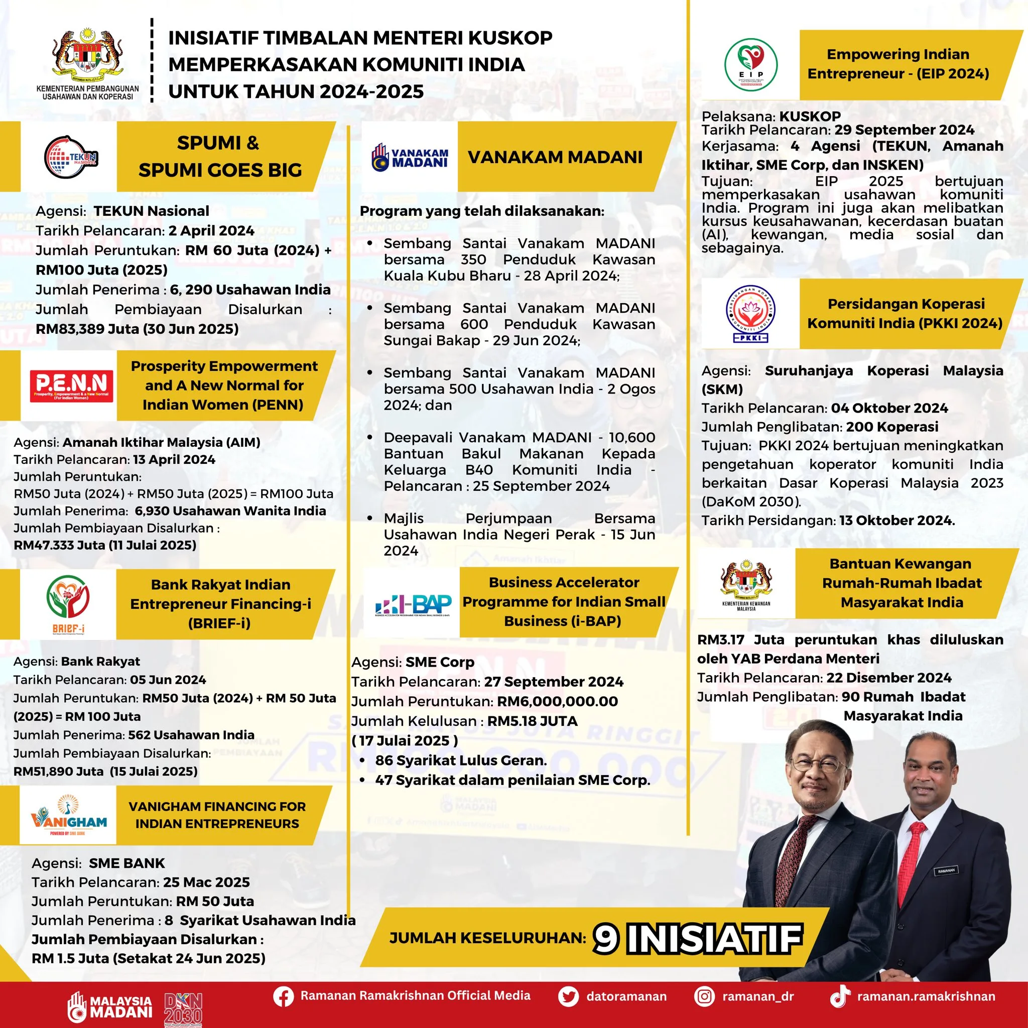 The Malaysian government’s pledge to build a more inclusive, fair, and progressive society under the Malaysia MADANI framework has taken a significant step forward, particularly in uplifting the Indian community’s economic standing. Since 2024, the Ministry of Entrepreneur Development and Cooperatives (KUSKOP), under the leadership of YB Dato’ Sri Ramanan Ramakrishnan, has rolled out nine high-impact initiatives tailored specifically to address the economic needs of Indian Malaysians.