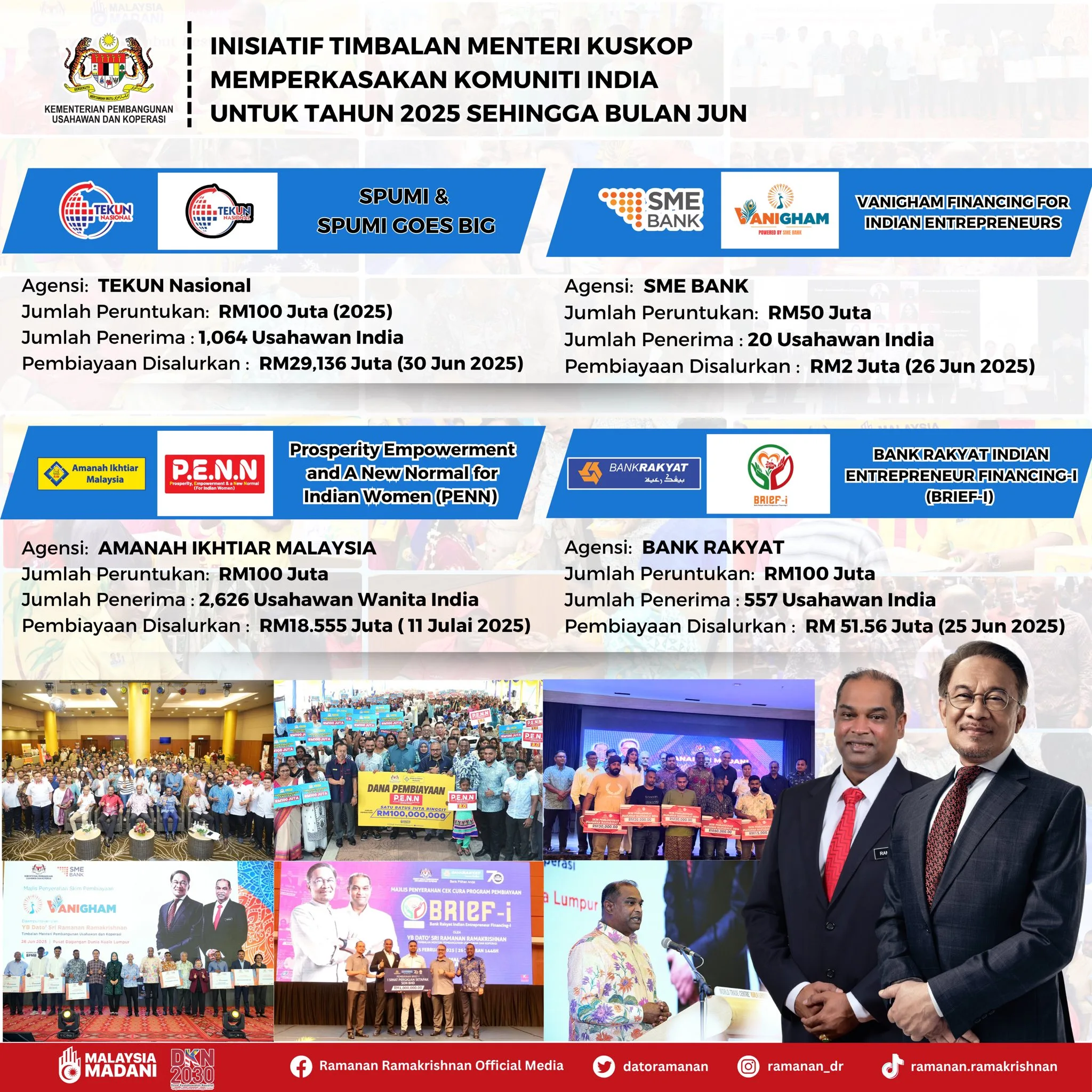 According to Dato Ramanan, these efforts were developed following a call from Prime Minister Datuk Seri Anwar Ibrahim, who emphasized the need for more targeted strategies under KUSKOP to strengthen the Indian community’s economic foundation. As of mid-2025, over RM356 million has been allocated through these programmes, benefiting nearly 9000 Indian entrepreneurs nationwide.