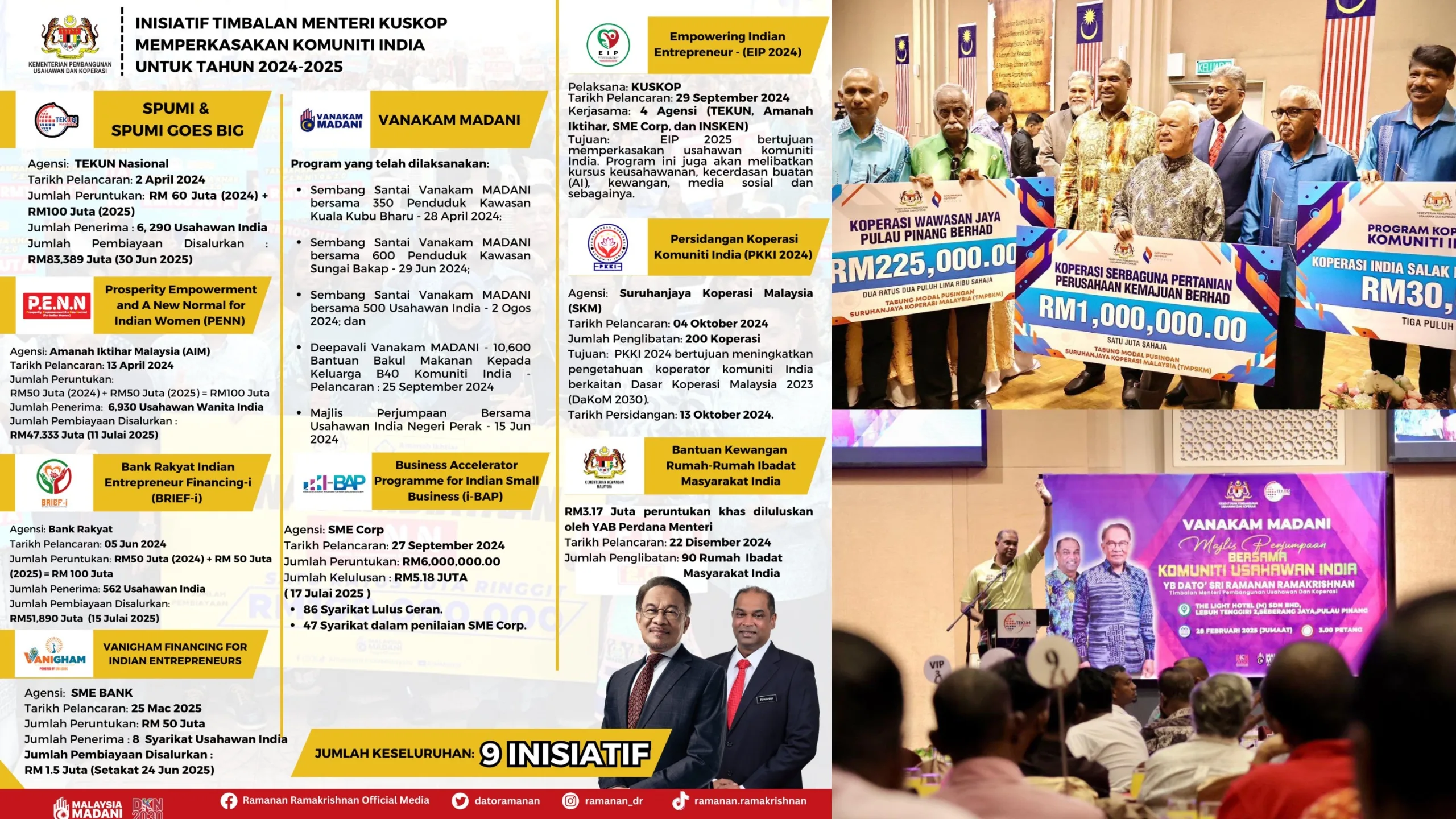 “The execution of these initiatives is a clear proof that the MADANI Government is always listening and acting towards the needs and hopes of the people, particularly the Indian community”, said Dato Ramanan in a statement.