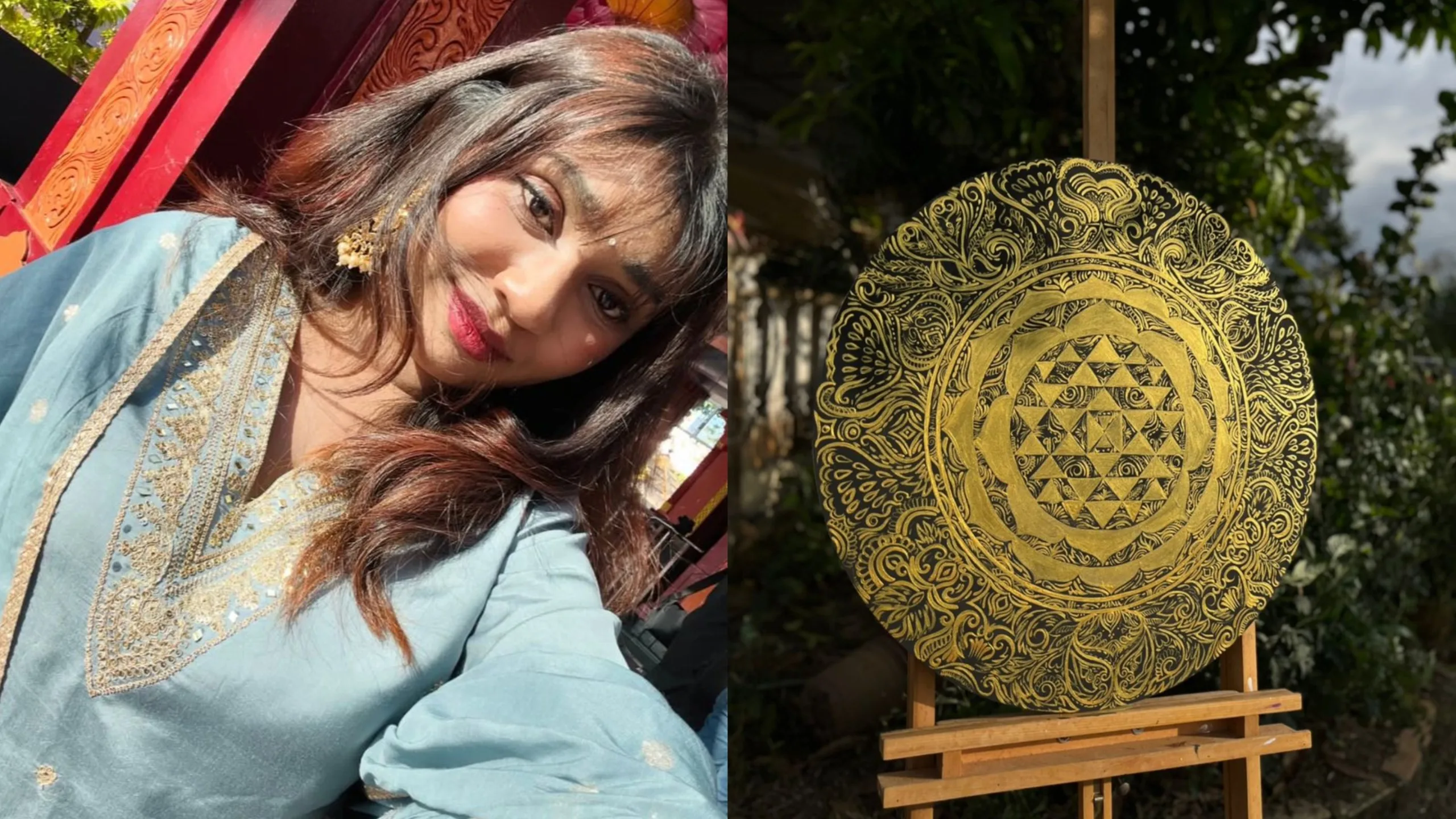 Kausalya’s love for art began early, but it wasn’t until the pandemic’s stillness that she uncovered the deeper, spiritual resonance of her craft. It wasn’t a planned career shift, it was a calling. Mandala painting, in particular, became her sanctuary during uncertain times, merging her love for colour, symmetry, and Indian heritage.
