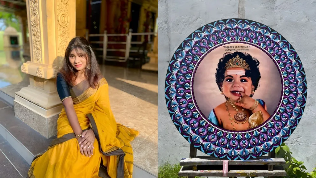 In a world constantly pushing for speed and noise, Kausalya Subramaniam, known for her growing online community as ‘Artshalya’ invites us into stillness, intention, and soul through her art. At just 19, what began as a creative exploration during the pandemic quickly transformed into a spiritual and cultural practice rooted in patience, identity, and feminine strength. Specialising in dot mandalas, Indian traditional motifs, and abstract compositions, her work is deeply personal yet universally grounding. Each canvas, each dot, is a meditation, a conversation between culture, colour, and consciousness.