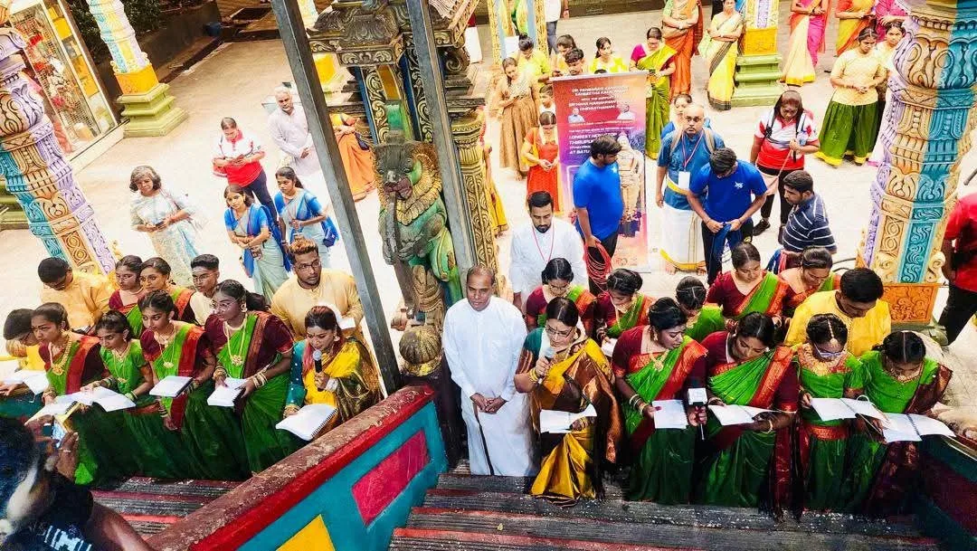 The record-breaking event was held at the Sri Subramaniar Swamy Temple in Batu Caves, with the support of the Maha Mariamman Devasthanam, Kuala Lumpur. Organised by Dr. Panbarasi and Kanimozhi, the event carried the meaningful theme “Paadi Paadi Unthan Paatham Paninthom Muruga”, reflecting deep devotion through continuous hymn singing.