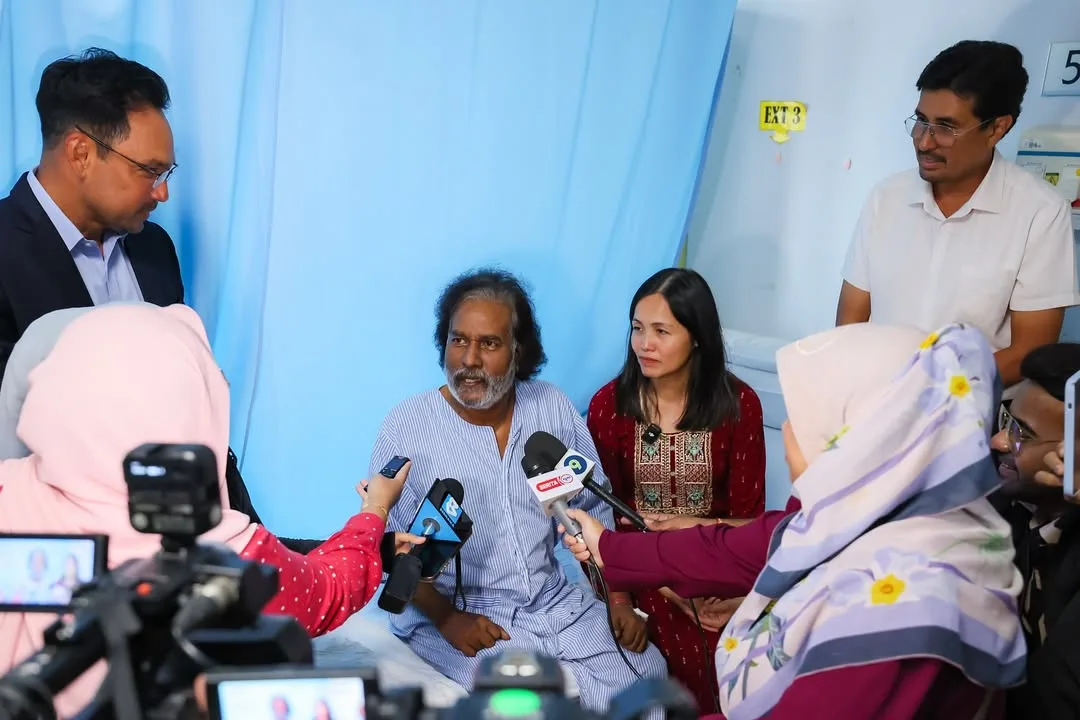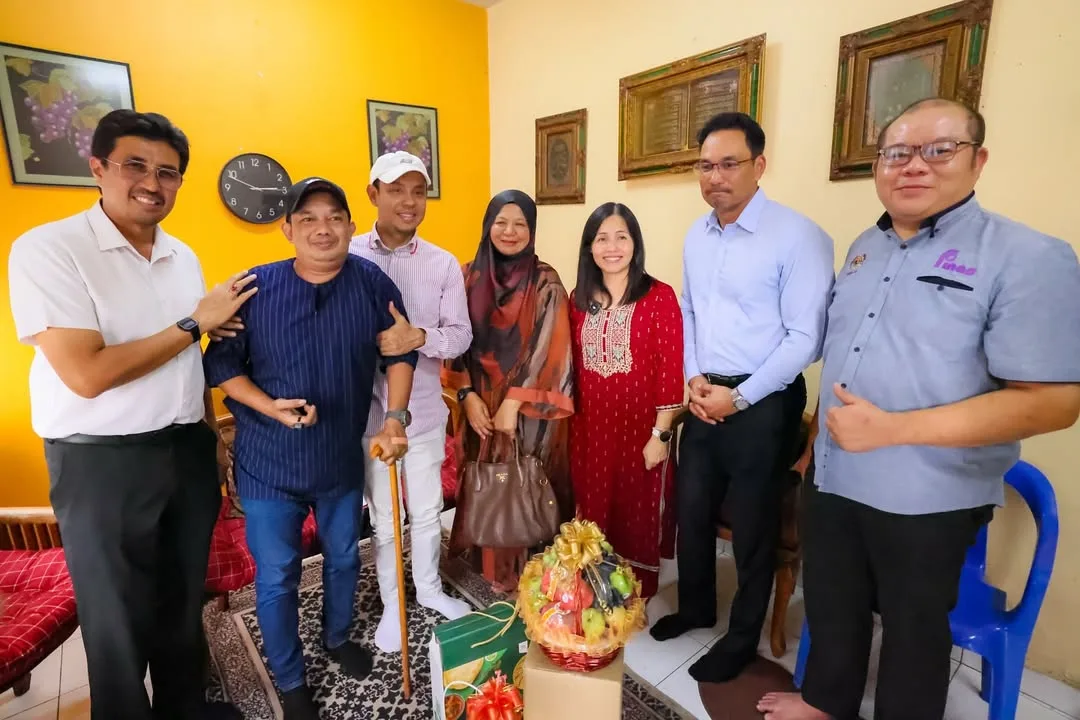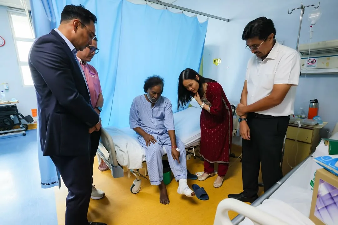 Among those visited was comedian and actor, Sathiya (61), widely remembered for his role as Ravi in the beloved sitcom Pi Mai Pi Mai Tang Tu. He is currently receiving treatment at Ampang Hospital after undergoing surgery to amputate three parts of his left foot, including the big toe, due to a severe infection.