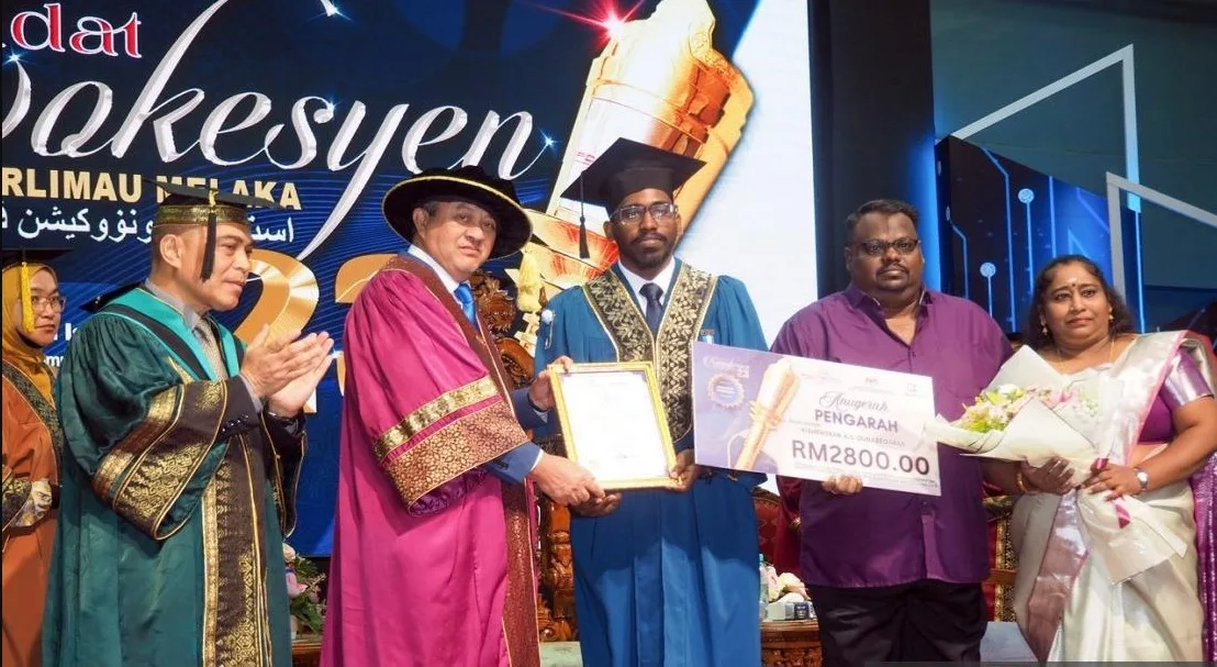 For G.Kishendran, the convocation of Merlimau Polytechnic, Melaka (PMM) was more than just a celebration of academic achievement, it marked the fulfillment of a lifelong dream, to stand on stage with his parents after earning top honours.