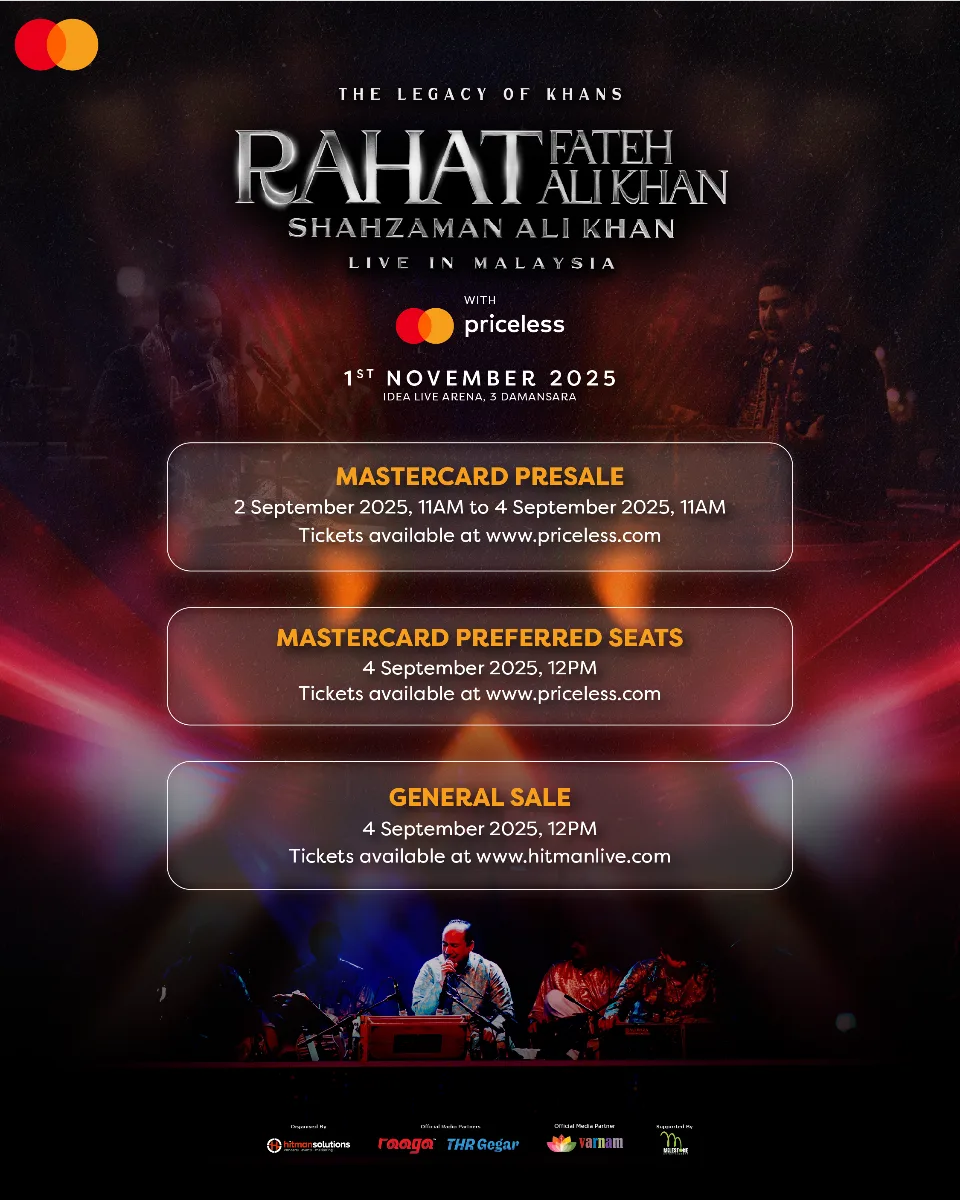 As part of the exclusive collaboration with priceless, Mastercard cardholders will enjoy presale access and preferred seats beginning on 2nd September 2025 at 11AM, available for 48 hours via priceless.com. Adding to the excitement, the first three fans to secure tickets during the presale will also stand a chance to meet Rahat and Shahzaman in person.