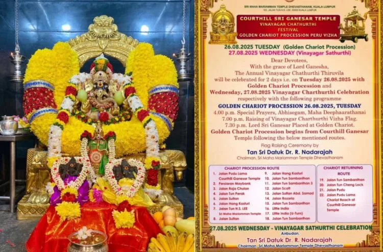 Vinayagar Chathurthi, one of the grandest and most cherished festivals in Hinduism, will be celebrated worldwide on 27th August 2025 in honour of Lord Ganesha, the remover of obstacles and bestower of wisdom and prosperity. On this auspicious day, devotees will perform special prayers at home, while temples dedicated to Ganesha will hold elaborate ceremonies to mark the occasion. In Malaysia, the Court Hill Sri Ganesar Temple, also known as the Kortumalai Pillaiyar Temple, stands out as one of the most renowned Ganesha temples where the festival is observed with great devotion and splendour.