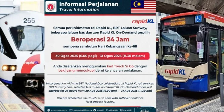 Malaysians heading to the Ambang Merdeka countdown or the National Day parade will be able to travel more conveniently this year, as Rapid KL announced it will be running 24-hour transport services from 6am on 30th August until 11:30PM on August 31st.
