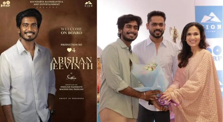 Abishan takes on the lead role of Sathya in the film, which is currently being made under the working title Production No. 4. The project is produced by Soundarya Rajinikanth, alongside Pasilian Nazerath and Magesh Raj Pasilian, with filming already in progress under the banners of MRP Entertainment and Zion Films.
