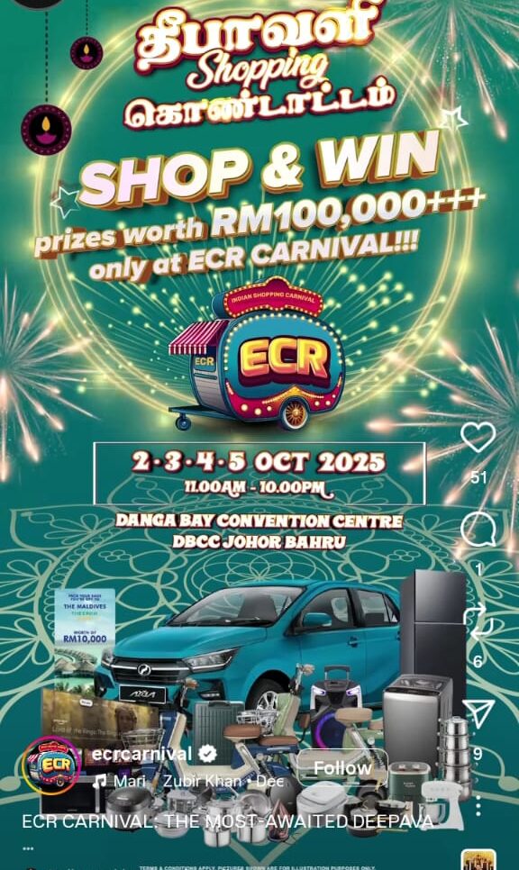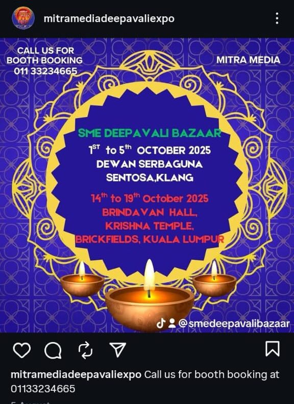 As we step into October, excitement is in the air as the most awaited month for Indians arrives — Deepavali, which falls on 20th October 2025. The festive spirit is already lighting up social media, with event organisers announcing a wide array of celebrations and bazaars set to take place throughout the month. These Deepavali bazaars are not only happening across the Klang Valley but also in Johor, Kedah, and several other states, bringing the festive cheer closer to everyone.