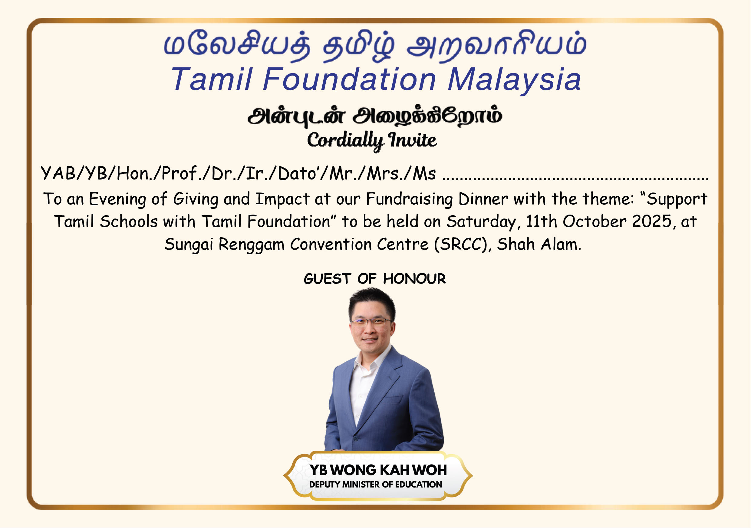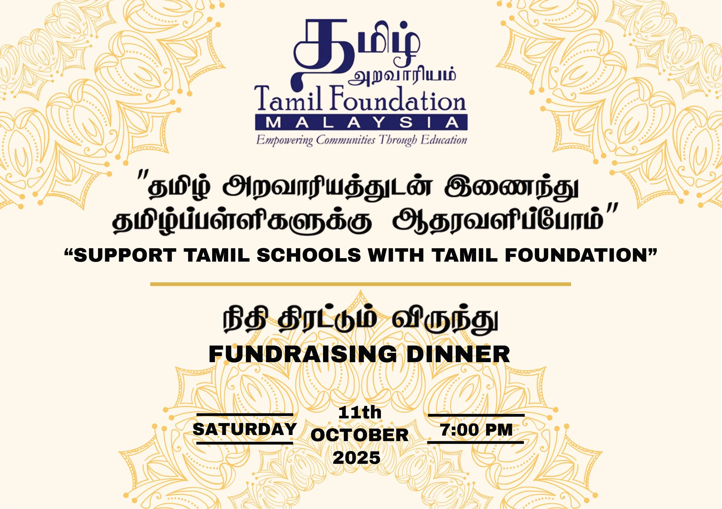 The Tamil Foundation has announced a fundraising event aimed at expanding projects related to Tamil schools. Established on February 14, 2004, the Foundation has conducted various programs and events that have benefited over 500 Tamil schools throughout Malaysia, according to the Manogaran, President of Tamil Foundation.
