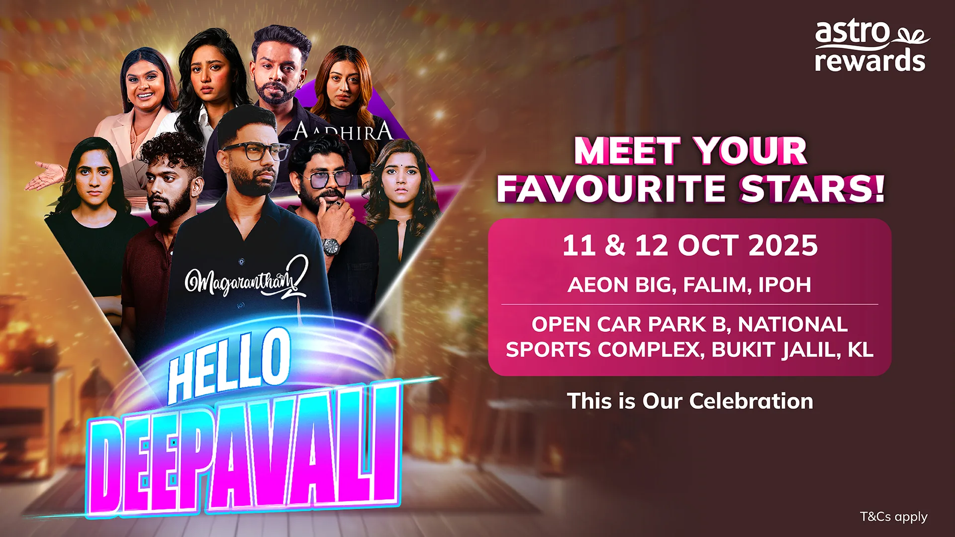 To further spread festive cheer, Astro invites Malaysians to join the ‘Hello Deepavali’ events, offering meet-and-greet sessions with popular talents from House Kanavan, Aadhira, and Magarantham Season 2.