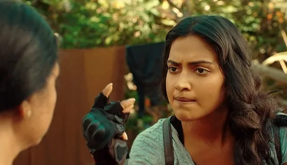 All of this is wonderfully established in the humorous and gripping first half. (The scene where Kamini, while under the influence of magic mushrooms, starts stripping in front of her friends is uncomfortable to watch and I mean that as a compliment to the director and Amala Paul’s performance.) After a crazy night of drinking and partying, Kamini wakes up in an empty office building. Her clothes, phone and friends are nowhere to be found.
