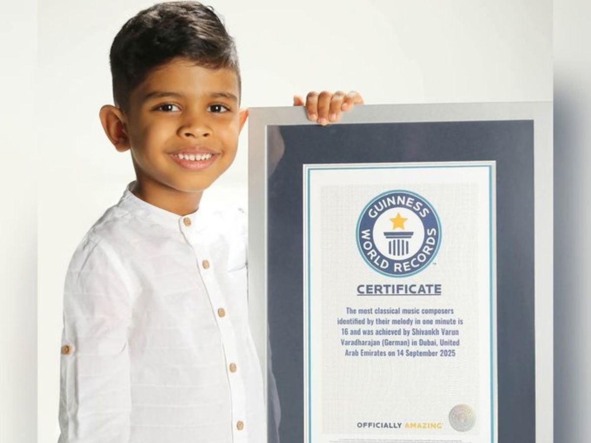In an extraordinary display of musical brilliance, six-year-old Shivankh Varun Varadharajan, a German-Tamil boy born and raised in Dubai has made history by earning a Guinness World Record for identifying 16 classical music composers by ear in just one minute. The record-breaking feat, achieved on 14th September in Dubai has earned the young prodigy global admiration and recognition as a rare musical talent.