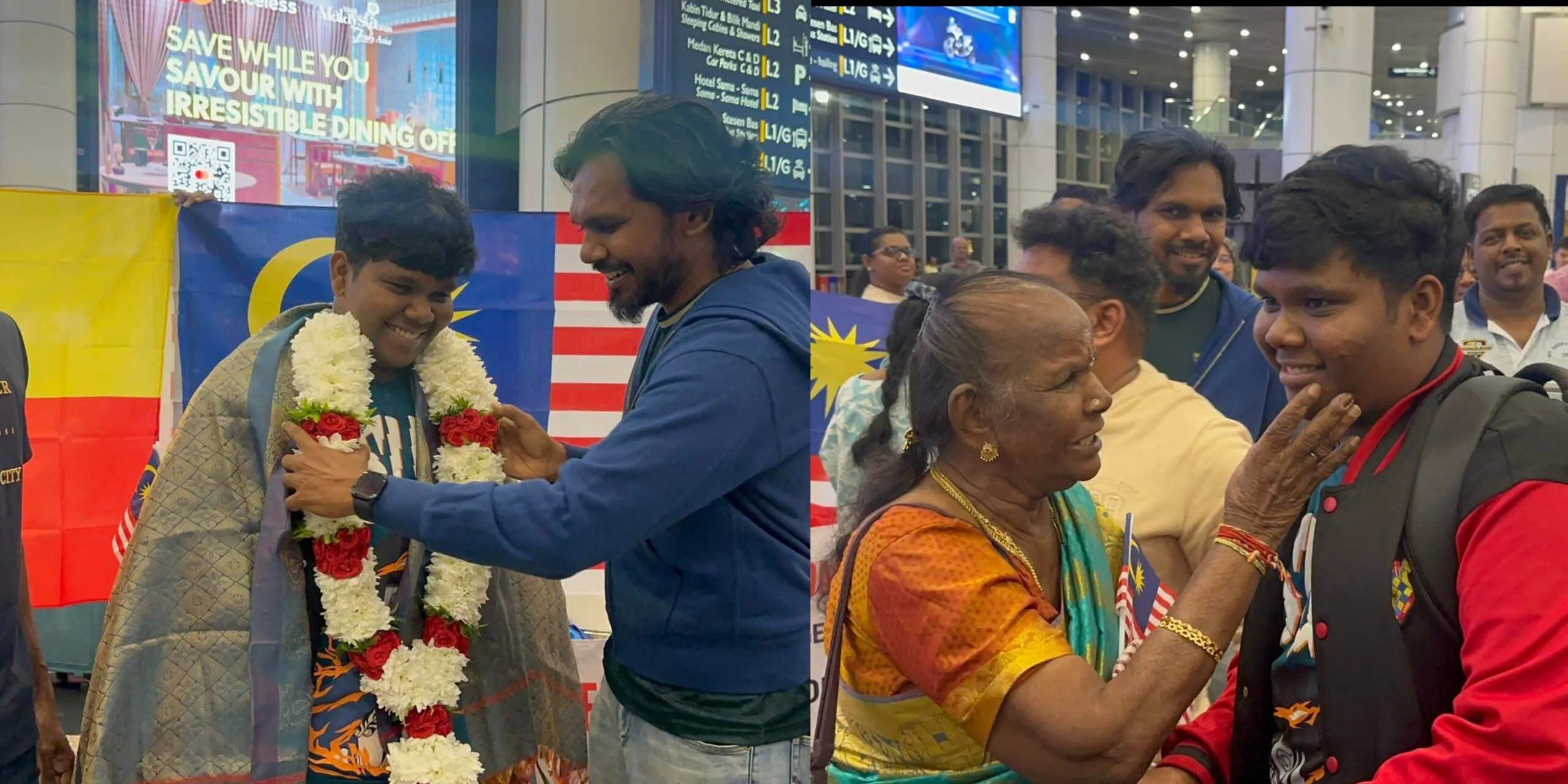 Upon his triumphant return from Mongolia, FM Genivan Genkeswaran was warmly welcomed at KLIA by his proud family and friends, celebrating his hard-earned success.