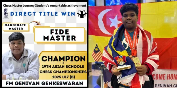 Malaysia’s young chess ace, Genivan Genkeswaran, has achieved a remarkable milestone by being crowned champion in the U17 Boys category at the 19th Asian Schools Chess Championships 2025, held in Mongolia.