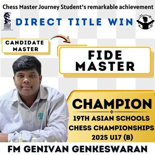 Demonstrating exceptional skill and strategic brilliance, Genivan’s victory not only brought pride to the nation but also earned him a prestigious title upgrade from Candidate Master (CM) to FIDE Master (FM), a significant accomplishment in the international chess arena.
