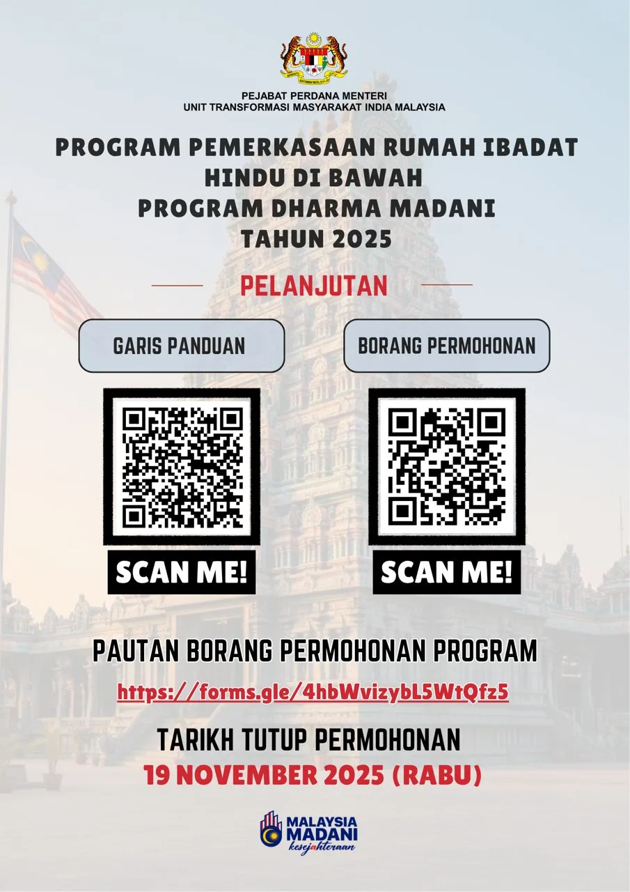 MITRA encourages all eligible temple committees and religious organisations to take advantage of this opportunity and submit their applications before the deadline.